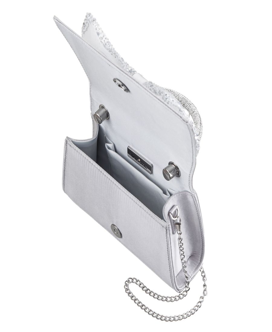 Сумка Legacy - это ослепительная сумка, украшенная кристаллами, с эффектным бантом из кристаллов на переднем клапане. Идеальная для вечернего выхода, она достаточно вместительна, чтобы вместить все необходимые вещи, и закрывается на магнитную застежку. Сумка оснащена защитными ножками и цепочкой для переноски.