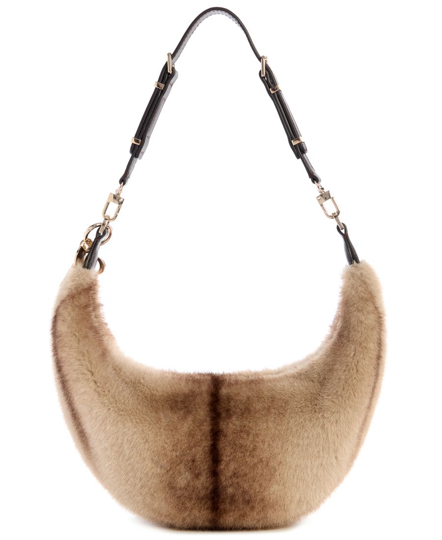Ощутите уют и элегантность с этой сумкой-хобо от GUESS, отделанной мягким искусственным мехом. Съемный регулируемый плечевой ремень обеспечивает удобство ношения. Застежка-молния сверху гарантирует сохранность содержимого во время носки. Съемный брелок добавляет индивидуальности дизайну.