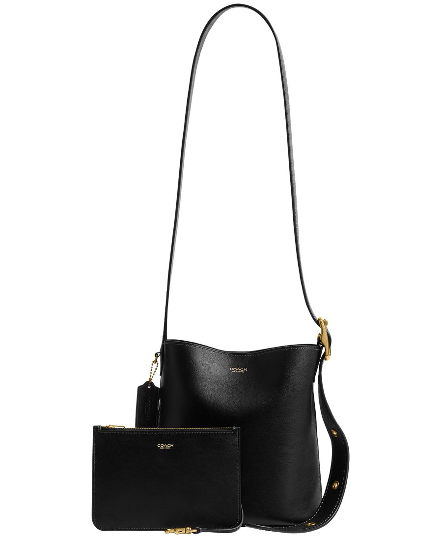 Маленькая кожаная сумка-ведро Bleecker 21 COACH, Brass/Black