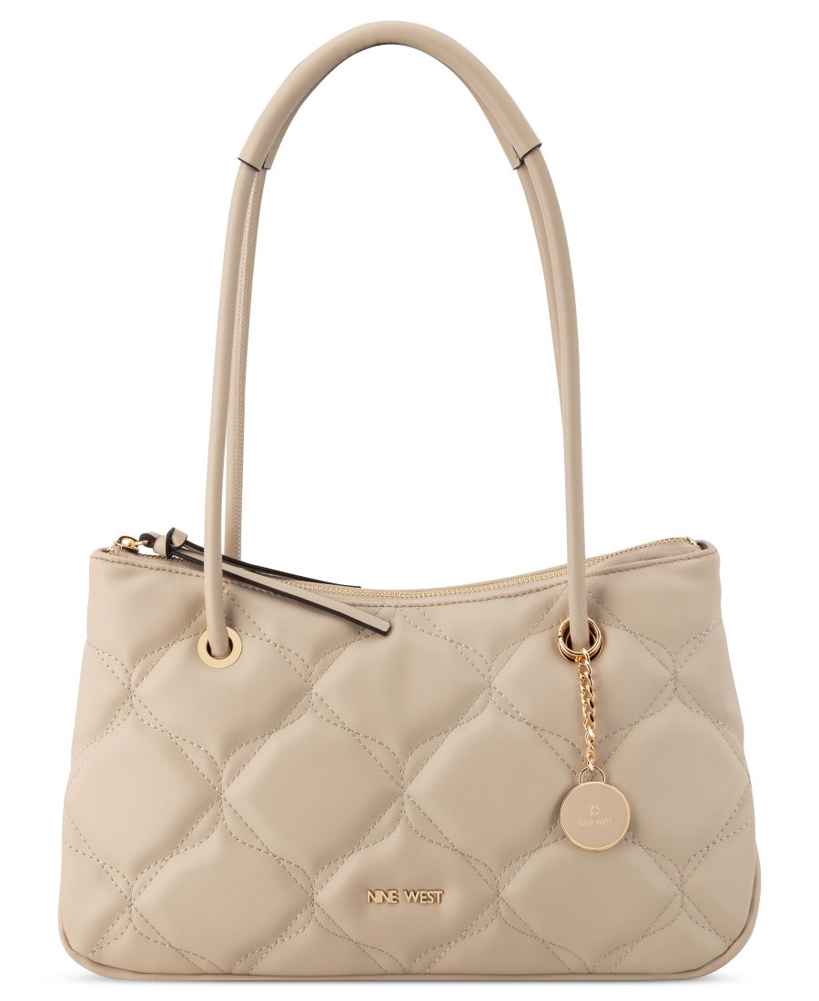 Дизайнерская сумка Nine West Lilias через плечо, выполненная в технике стегания с декоративным брелоком. Внутри имеются накладные и застегивающиеся на молнию карманы, а также внешняя фурнитура и фирменный знак. Застежка-молния по всей длине и фурнитура.