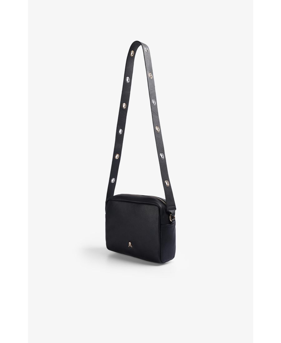 Сумка через плечо с перфорированными деталями и черепами. Изготовлена из 100% кожи. Металлическая застежка-молния. Длинный ремешок. Металлический логотип спереди. Внутренний и внешний задний карманы. Ширина: 21,5 см / высота: 16 см / глубина: 8 см