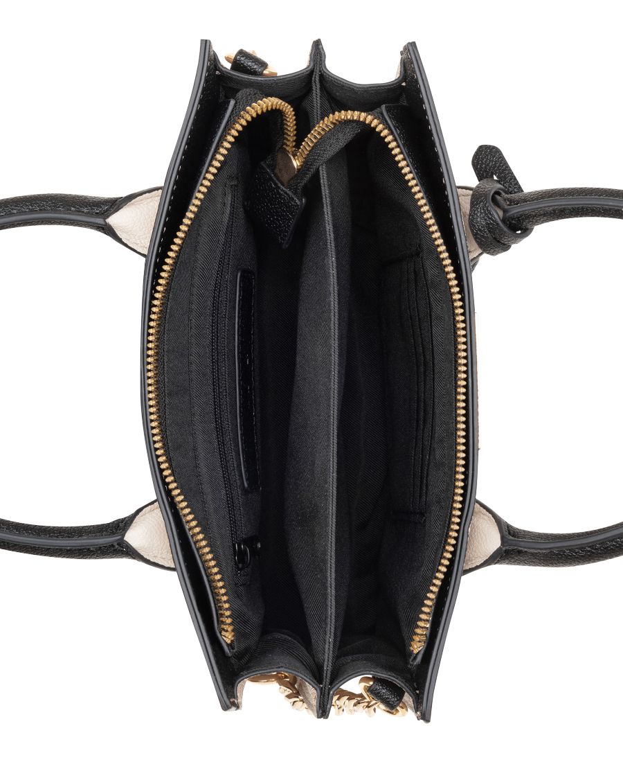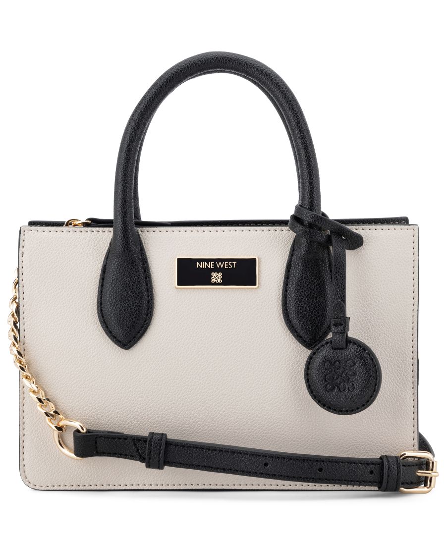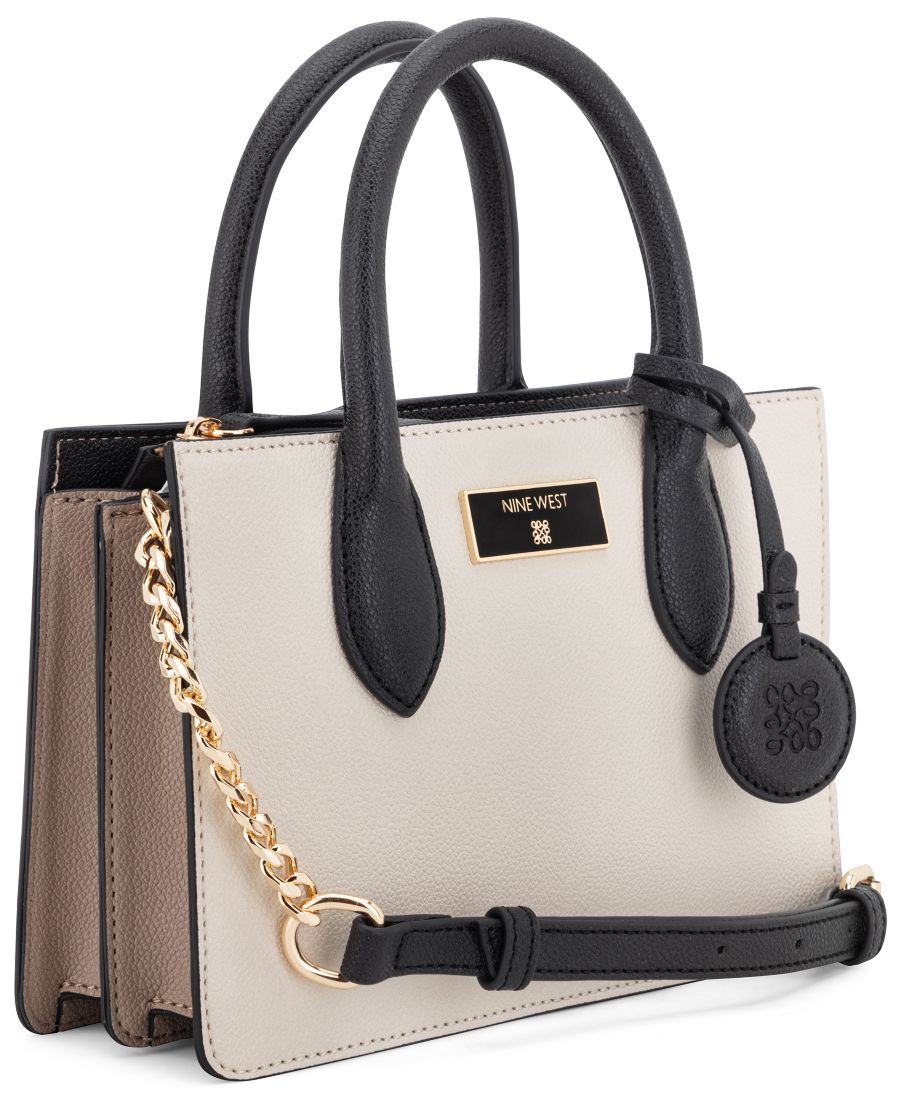 Дизайнерская мини-сумка-тоут Magdalina от Nine West с внутренними карманами на молнии и застежкой-молнией, а также внешней фурнитурой и фирменным знаком. Съемный ремешок-цепочка позволяет носить сумку без помощи рук, как стильную, так и в руке.