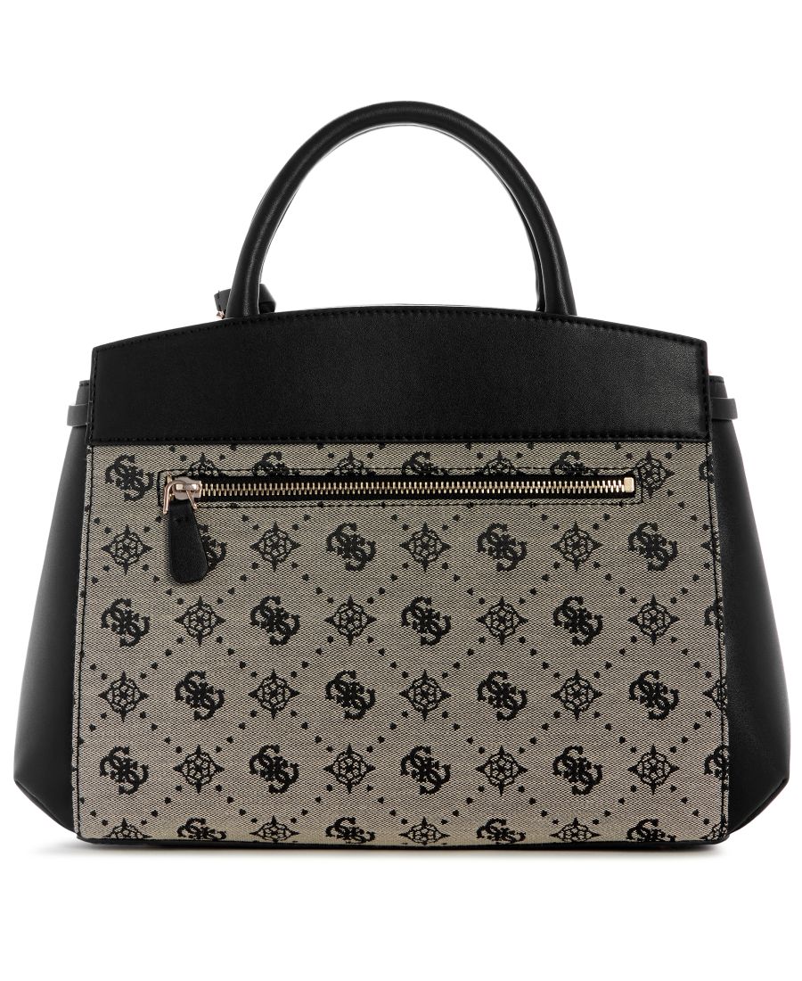 Эта сумка-саквояж GUESS, украшенная фирменным жаккардовым узором и гладкой отделкой, имеет три отделения и магнитную застежку. Блестящая фурнитура золотистого цвета, ножки и съемный брелок подчеркивают ее изысканный и функциональный стиль.