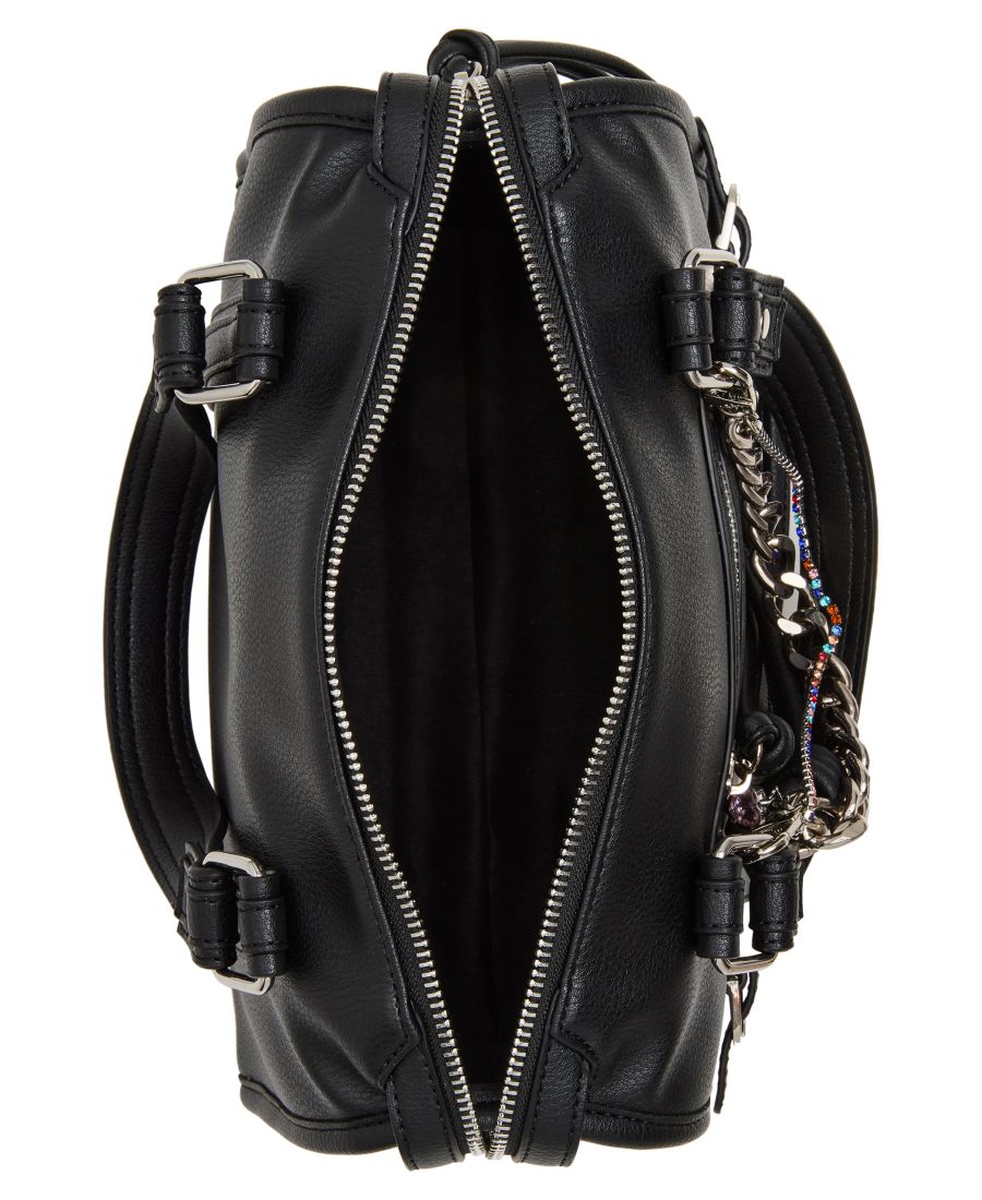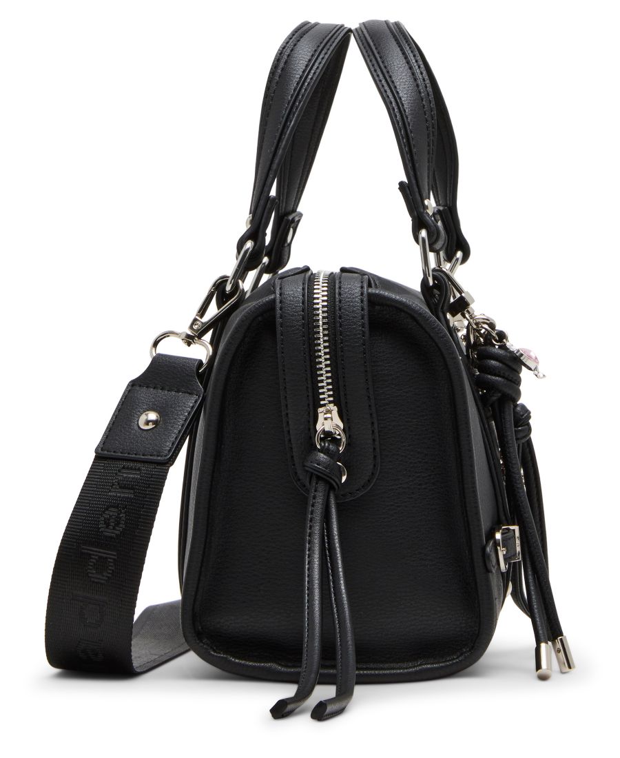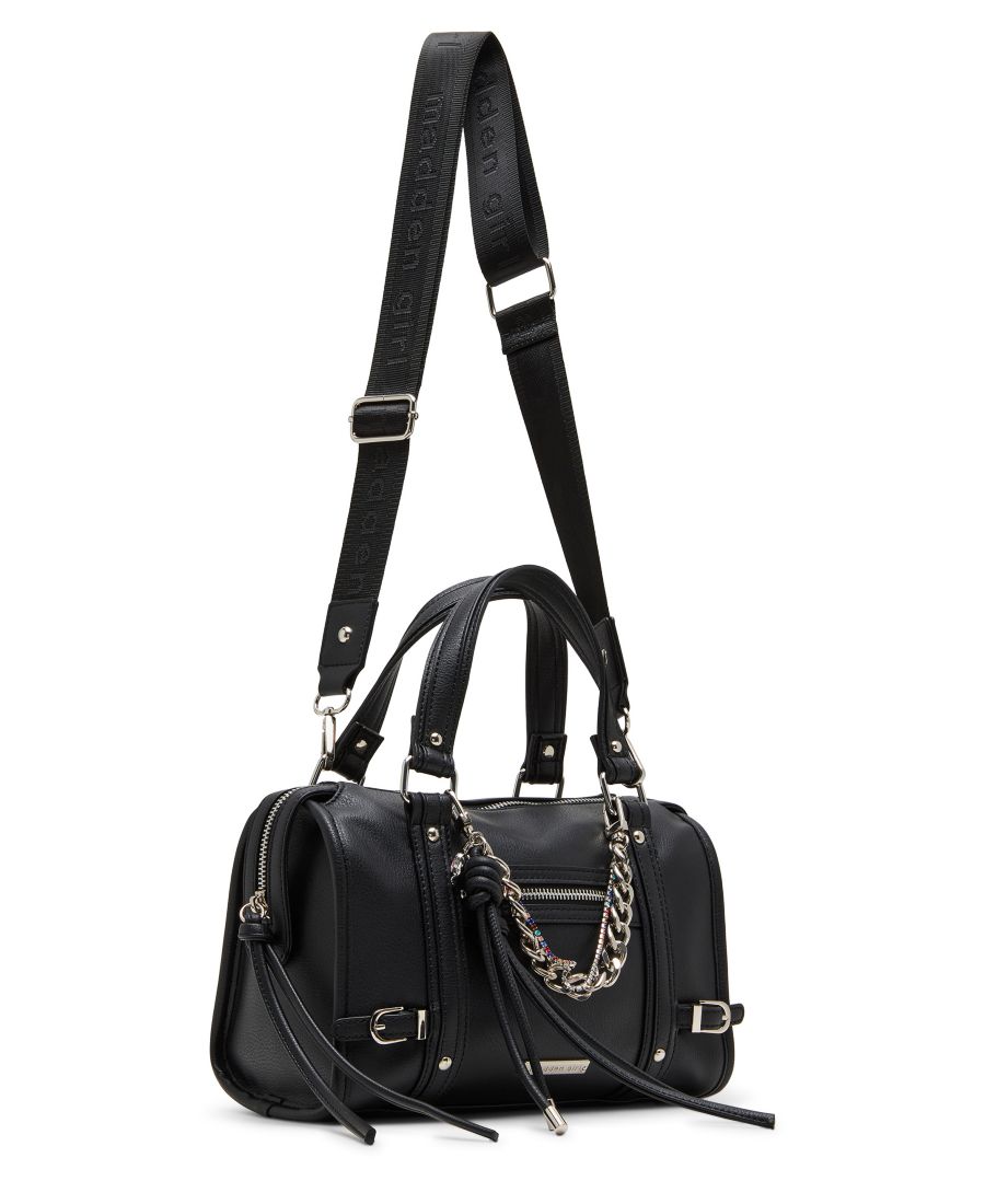 Привлеките всеобщее внимание с помощью этой стильной сумки-саквояжа от Madden Girl, украшенной яркими цепочками, серебристой фурнитурой и многослойными подвесками, которая станет эффектным аксессуаром как для дня, так и для вечера.