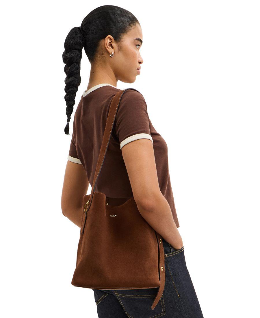 Сумка-ведро Bleecker Medium из замши COACH, Warm Brown