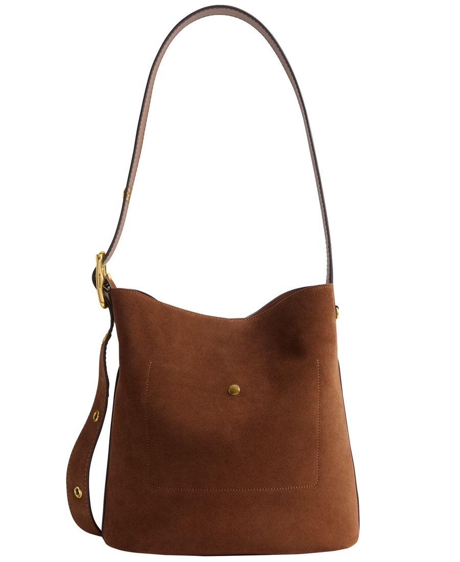 Сумка-ведро Bleecker Medium из замши COACH, Warm Brown 50 941₽