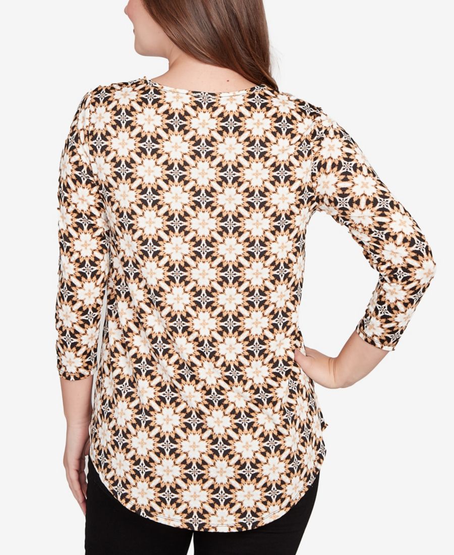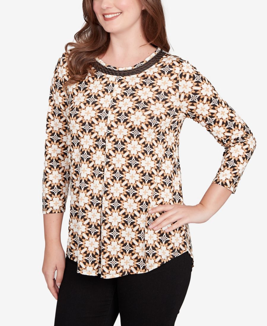 Топ из сетчатой ткани с геометрическим объемным принтом для невысоких девушек Ruby Rd, Tan Multi