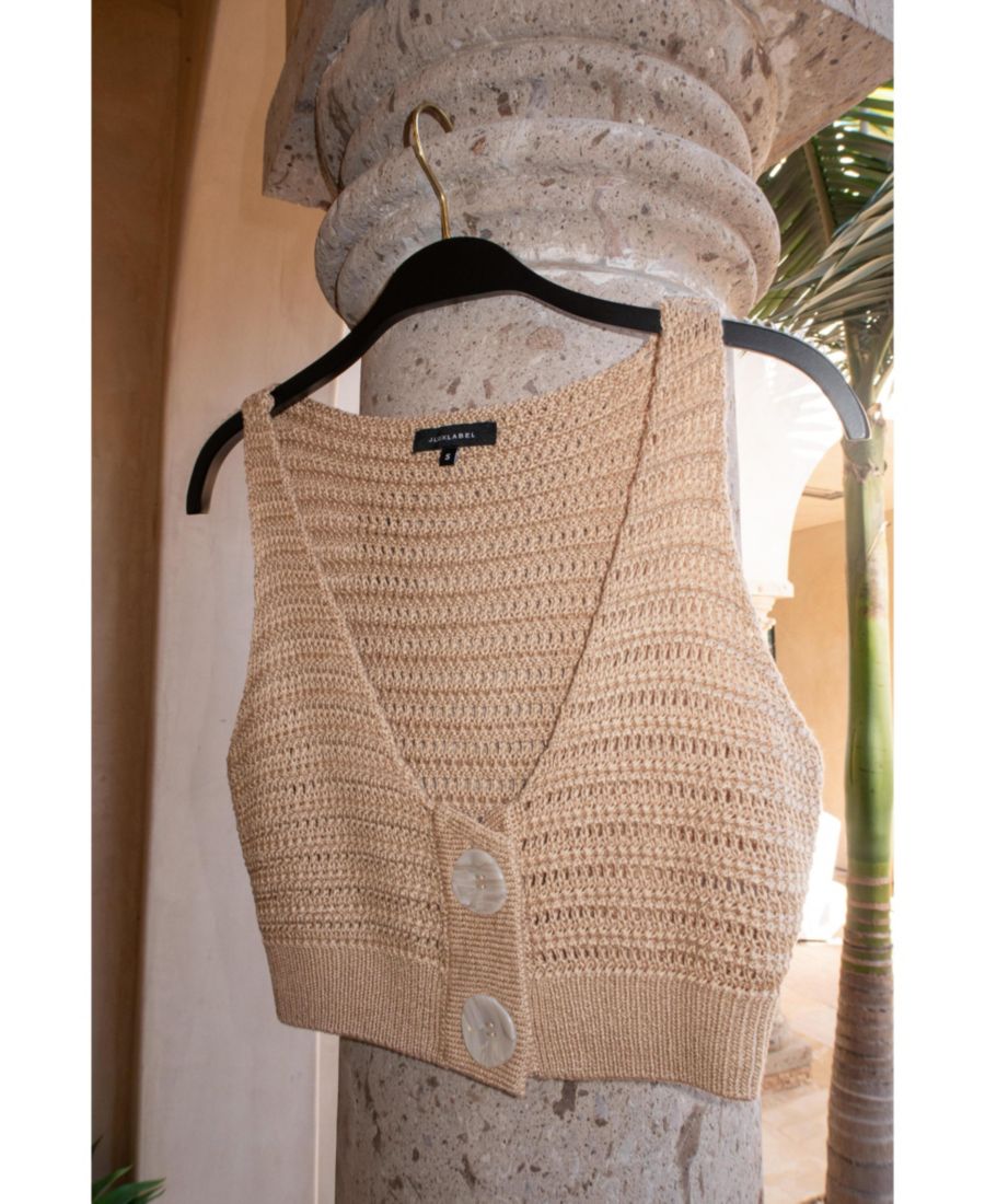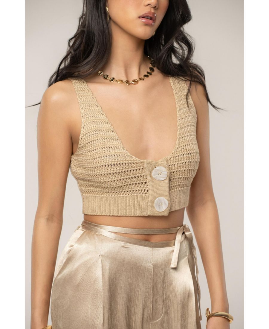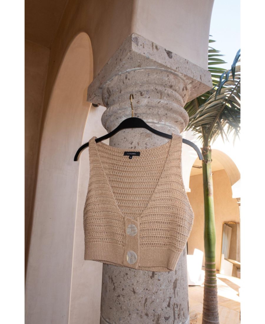 Пополните свою коллекцию женских топов с помощью вязаного топа Salmah Crochet Top, выполненного с элегантным вырезом-лодочкой и привлекательными крупными пуговицами, придающими ему современный вид." "Этот женский топ, выполненный с использованием тонкого, замысловатого вязаного узора, отличается выразительной текстурой, воплощающей непринужденный стиль." Ощутите идеальное сочетание комфорта и моды с этим эластичным укороченным топом без подкладки, идеально подходящим для повседневной носки и разнообразных сочетаний." "Этот топ, являющийся неотъемлемой частью переходного гардероба, излучает очарование и изысканность, что делает его обязательным элементом гардероба для любительниц женской одежды." "Откройте для себя универсальность этого уникального женского топа, который благодаря стильному дизайну и комфорту идеально впишется в ваш повседневный образ." 100% акрил Ручная стирка Сделано в Китае