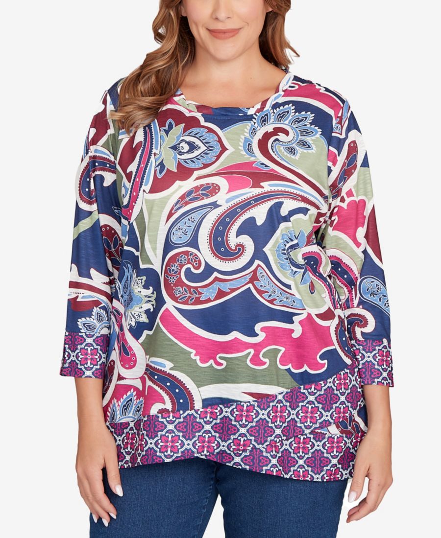 Топ больших размеров с геометрическим узором пейсли Ruby Rd, Deep Blue Multi 8 019₽