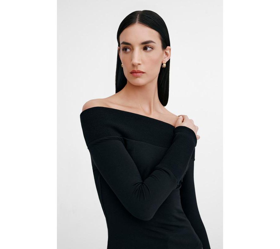 Прямой вырез-лодочка, открытые плечи