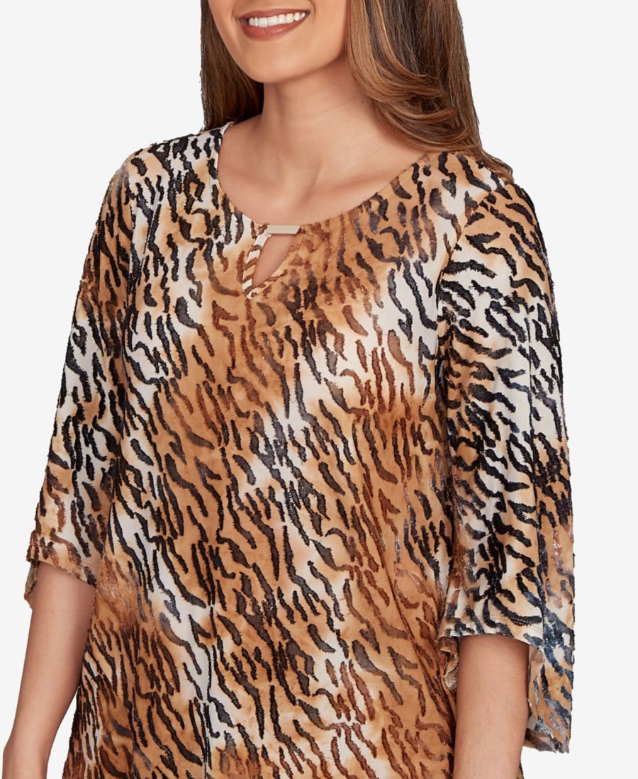 Миниатюрный топ с жаккардовым узором зебра в стиле тай-дай Ruby Rd, Tan Multi