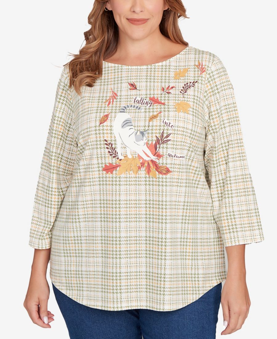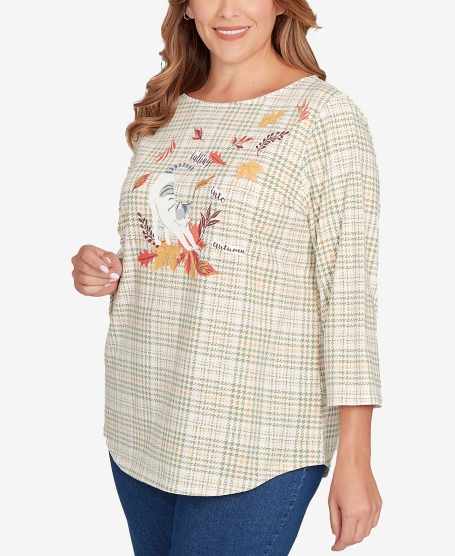 Топ больших размеров в осеннюю клетку гусиная лапка Ruby Rd, Moss Multi