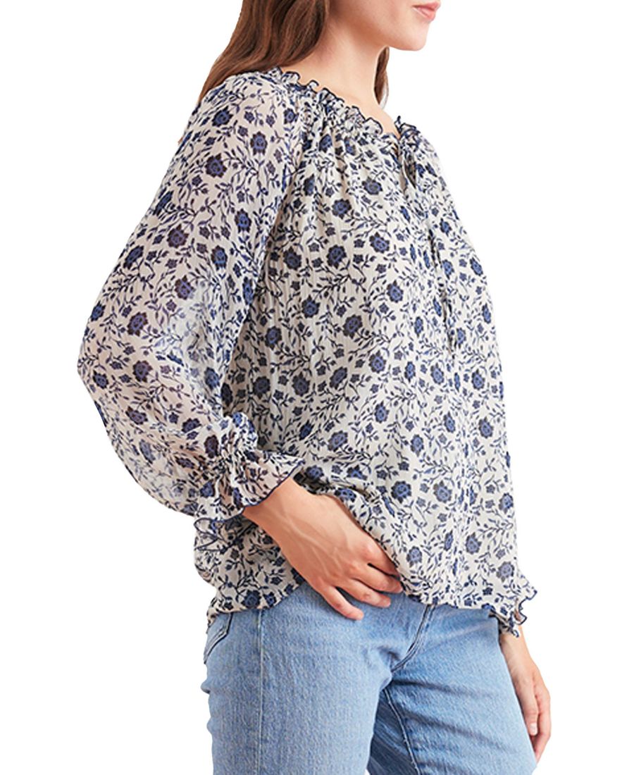Ощутите вневременную элегантность с этим романтичным топом с принтом. Изготовленный на Бали из дышащего вискозного шифона, он украшен классическим цветочным принтом и имеет регулируемый воротник с оборками для создания непринужденного образа как днем, так и вечером.