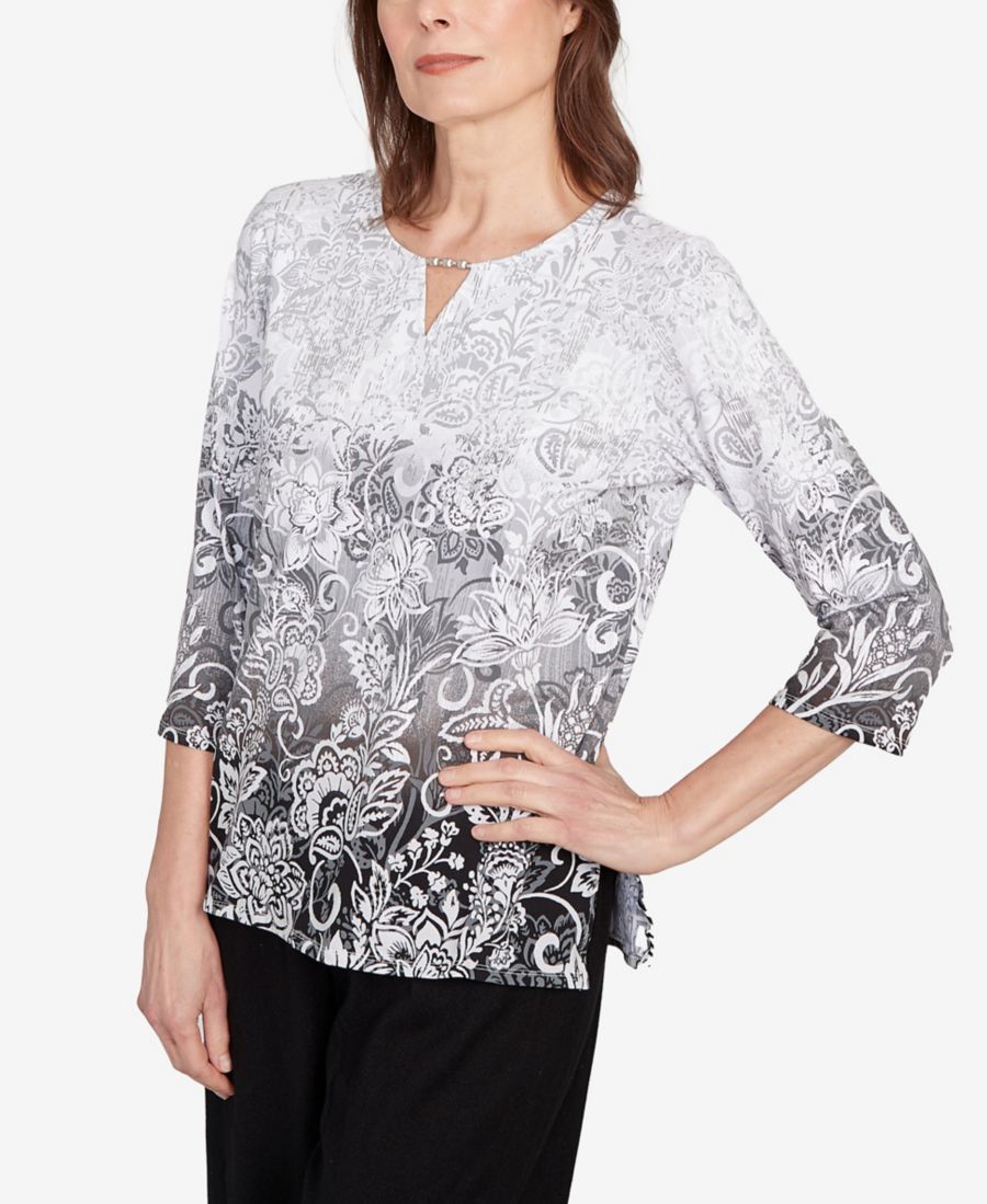 Женский топ с градиентным узором и бисерным вырезом Alfred Dunner, White 7 507₽