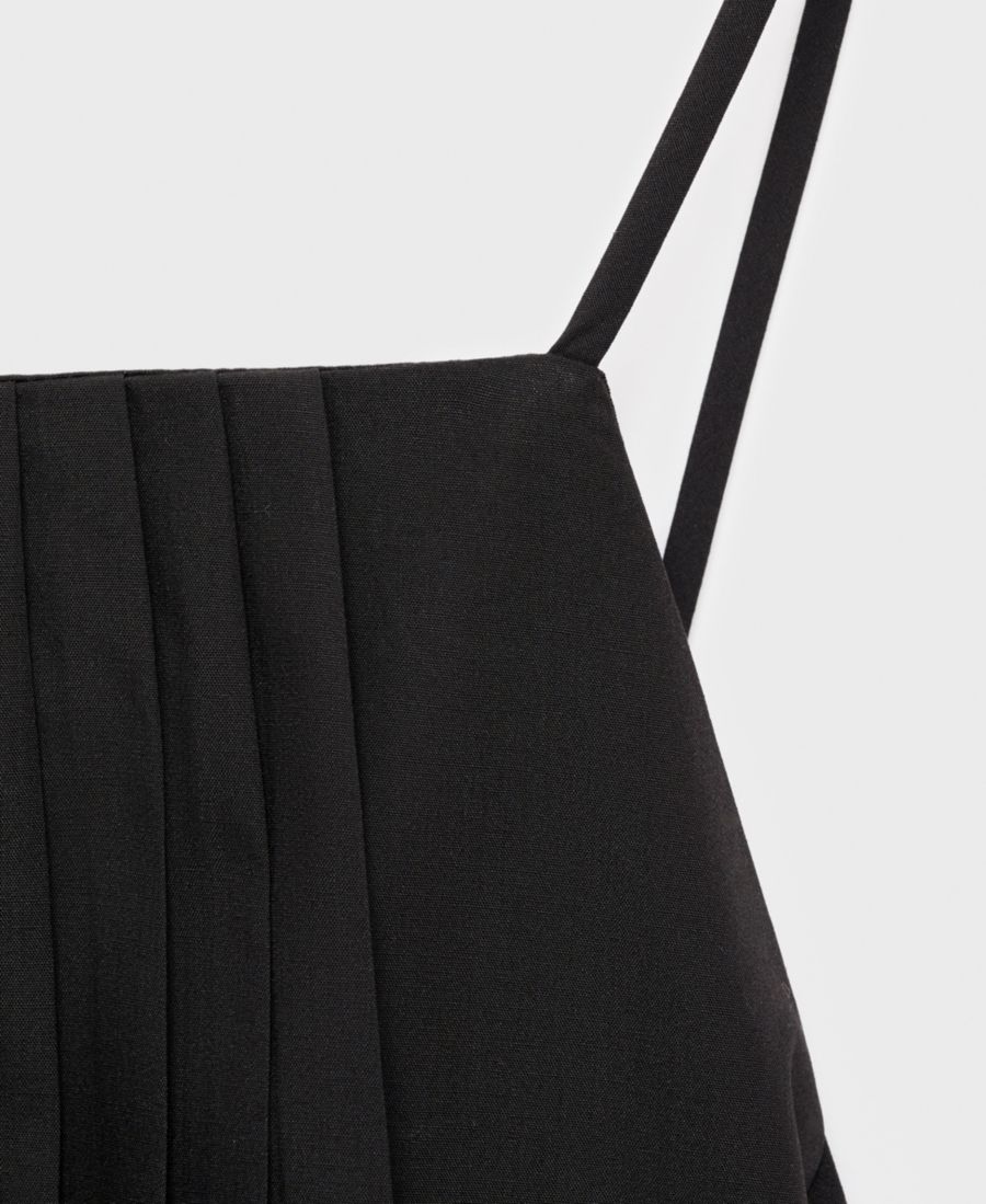 Легкий и универсальный, плиссированный комбинированный топ от Mango прекрасно дополнит многослойные образы. Изготовленный из смесовой хлопковой ткани, этот топ имеет плиссированный, комбинированный и прямой крой, без рукавов и тонкие регулируемые бретели.