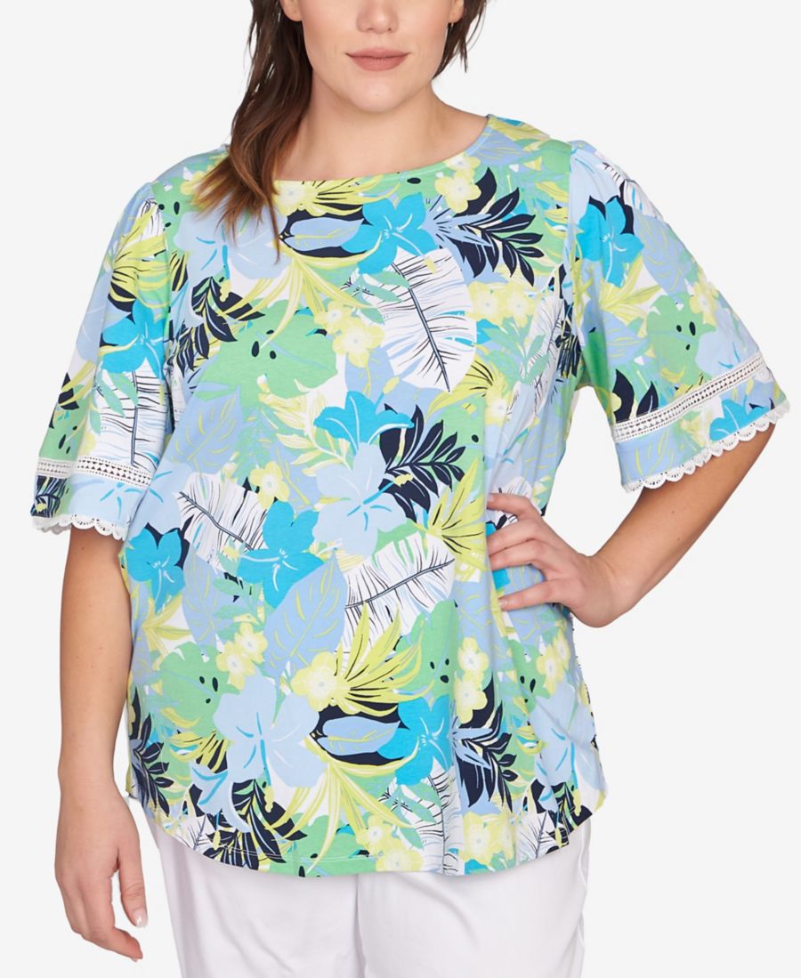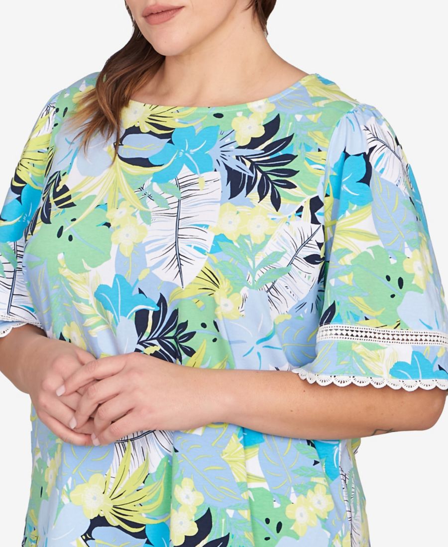 Топ с тропическим многослойным принтом больших размеров Ruby Rd, Chambray Blue Multi