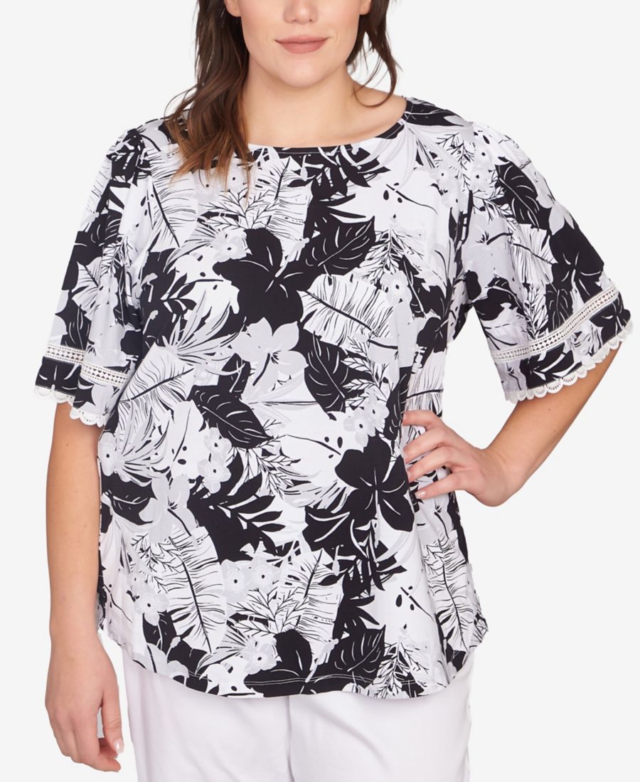 Топ с тропическим многослойным принтом больших размеров Ruby Rd, Black Multi