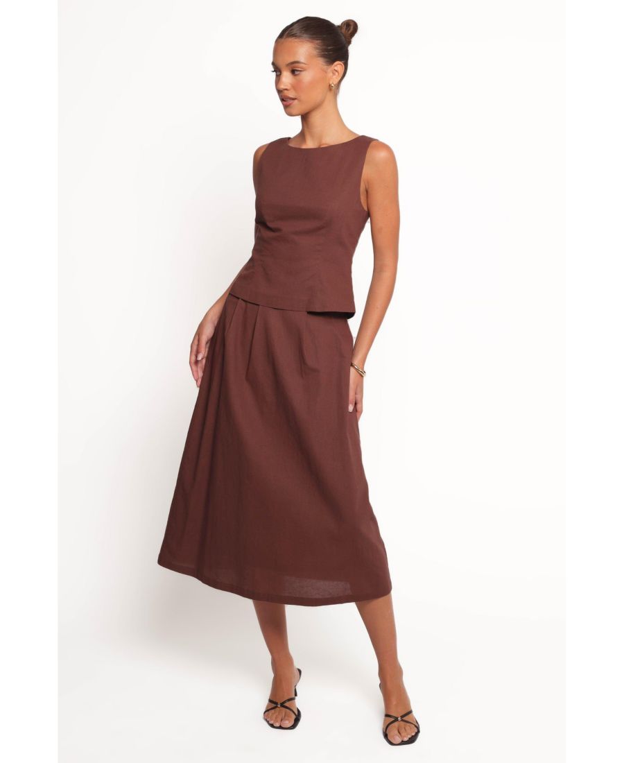 Топ Chiaro Shell коричневого цвета - идеальное сочетание вневременного стиля и современного дизайна. Благодаря элегантному круглому вырезу и силуэту без рукавов, он идеально сочетается со всем: от брюк с высокой талией до струящихся юбок.