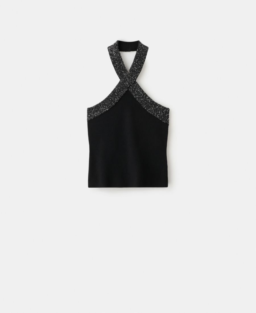 Женский топ с бретелькой через шею и блестками MANGO, Black