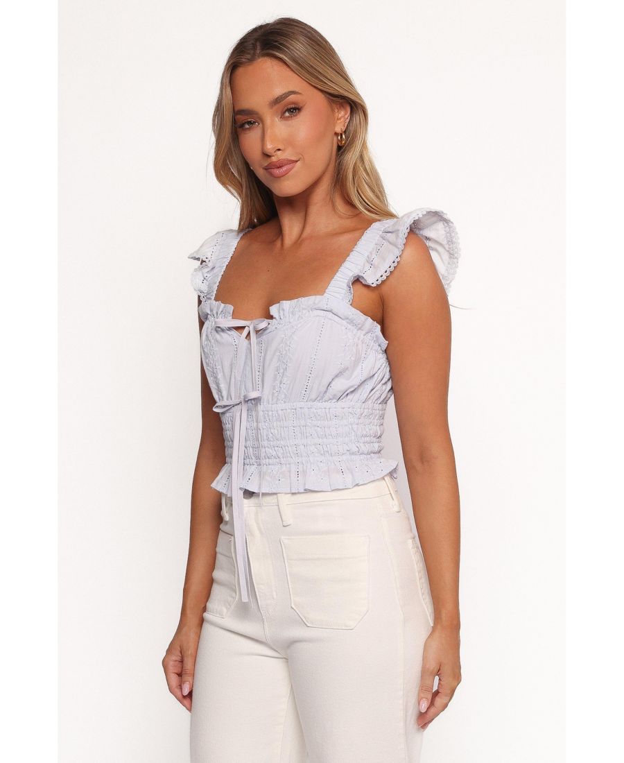 Ощутите непринужденное очарование с топом Giran в цвете Кашемирово-синий. Этот укороченный топ с квадратным вырезом идеально подчеркивает ключицы, а эластичные бретели с изящной оборкой добавляют образу нотку игривости.