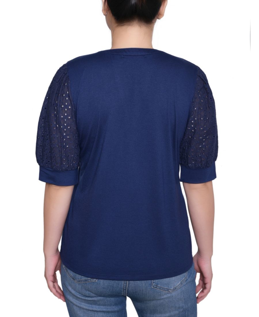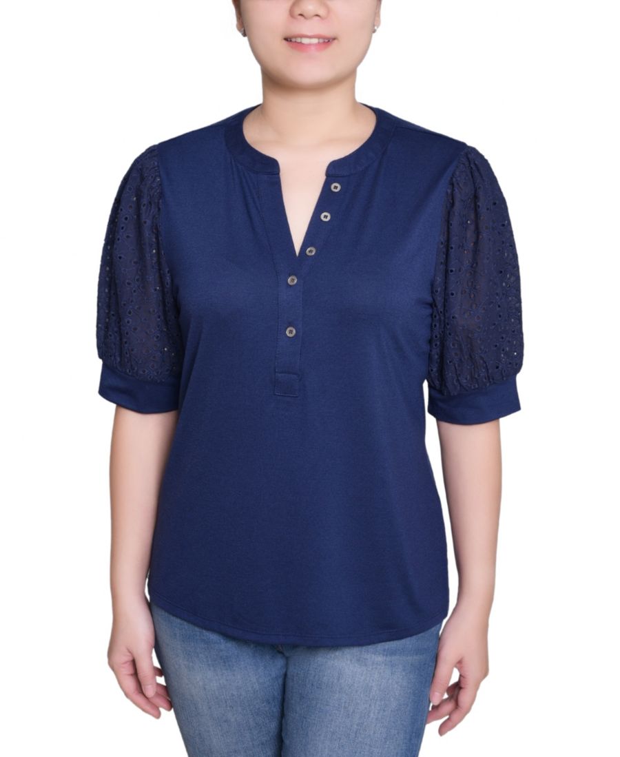Топ с короткими рукавами-лодочками NY Collection, Navy