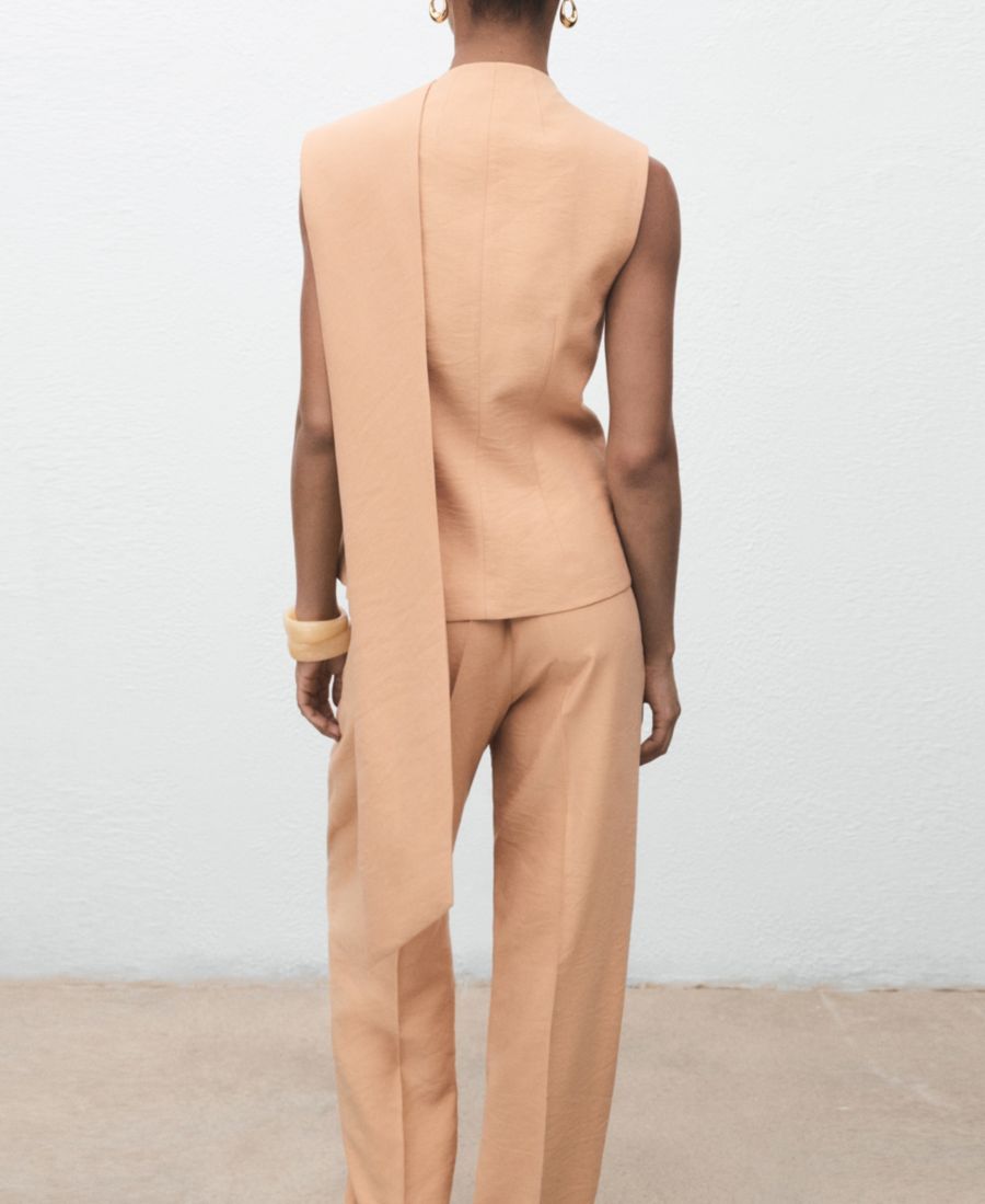 Асимметричный топ с платком от Mango отличается оригинальным дизайном. Изготовленный из ткани лиоцелл, этот топ имеет асимметричный дизайн, крой без рукавов и круглый вырез с декоративным платком.