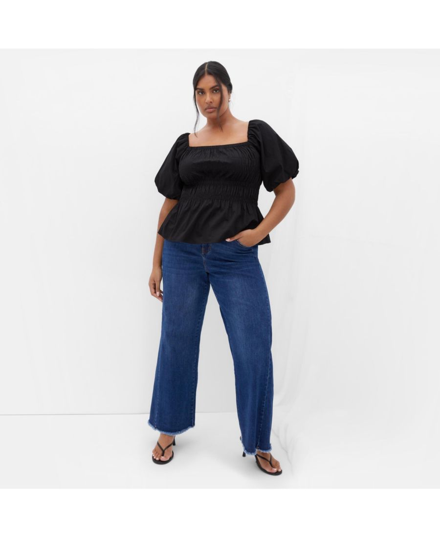 Подчеркните свои изгибы с помощью топа Blaire, отличающегося модными короткими рукавами-фонариками и великолепным дизайном с баской. Он изготовлен из хлопка для комфорта на каждый день.