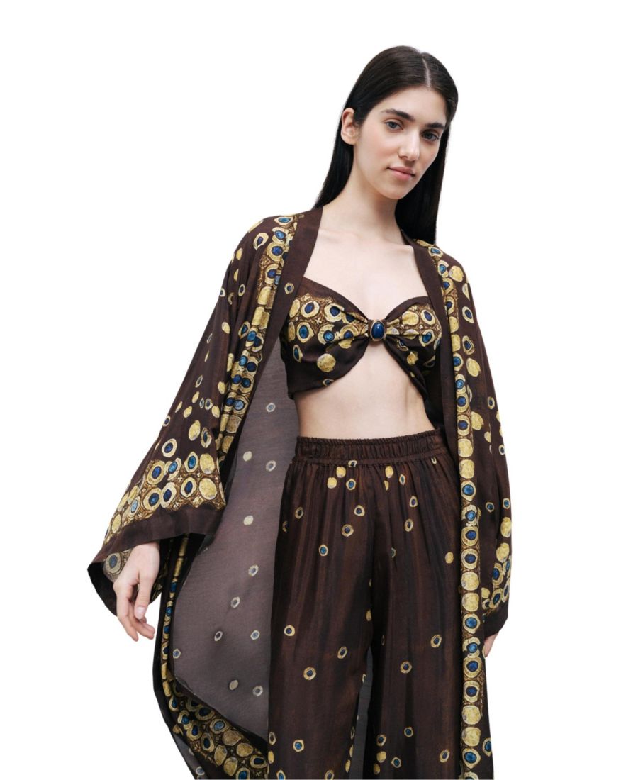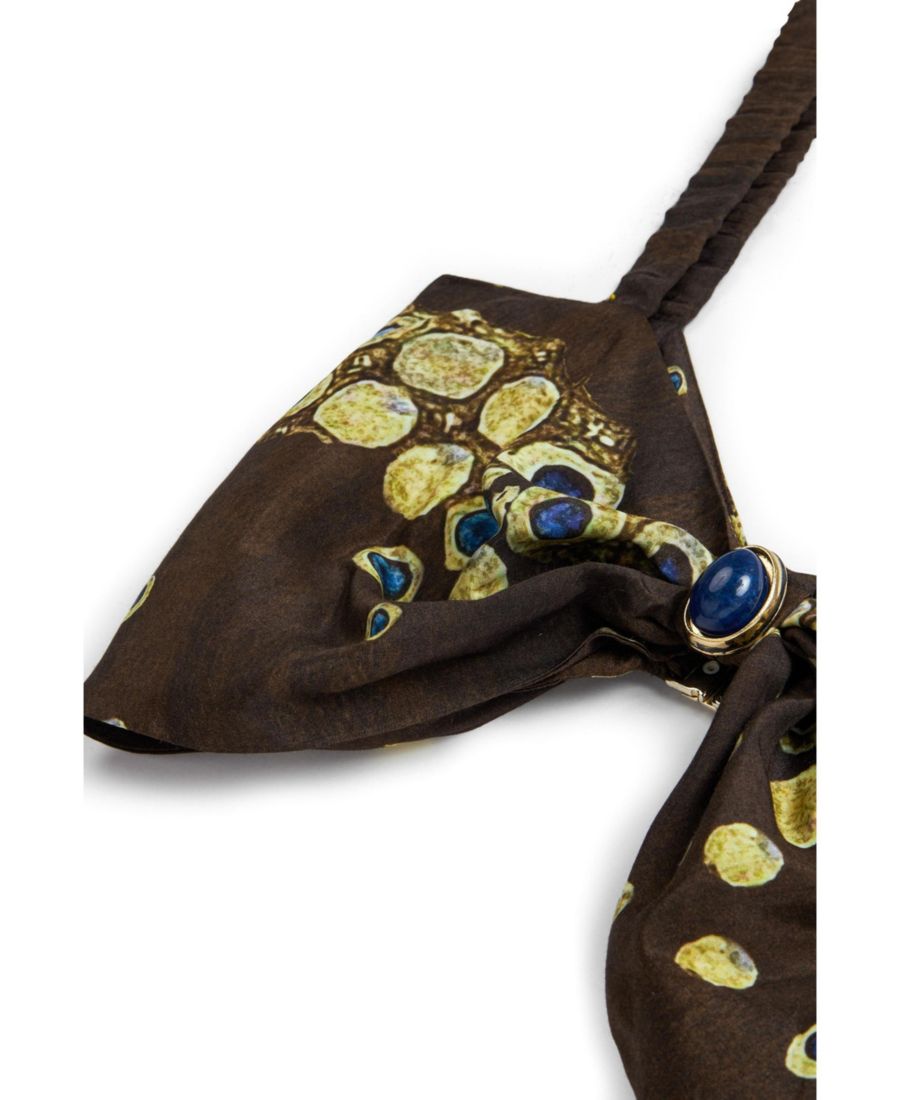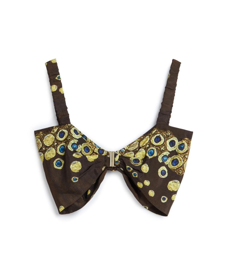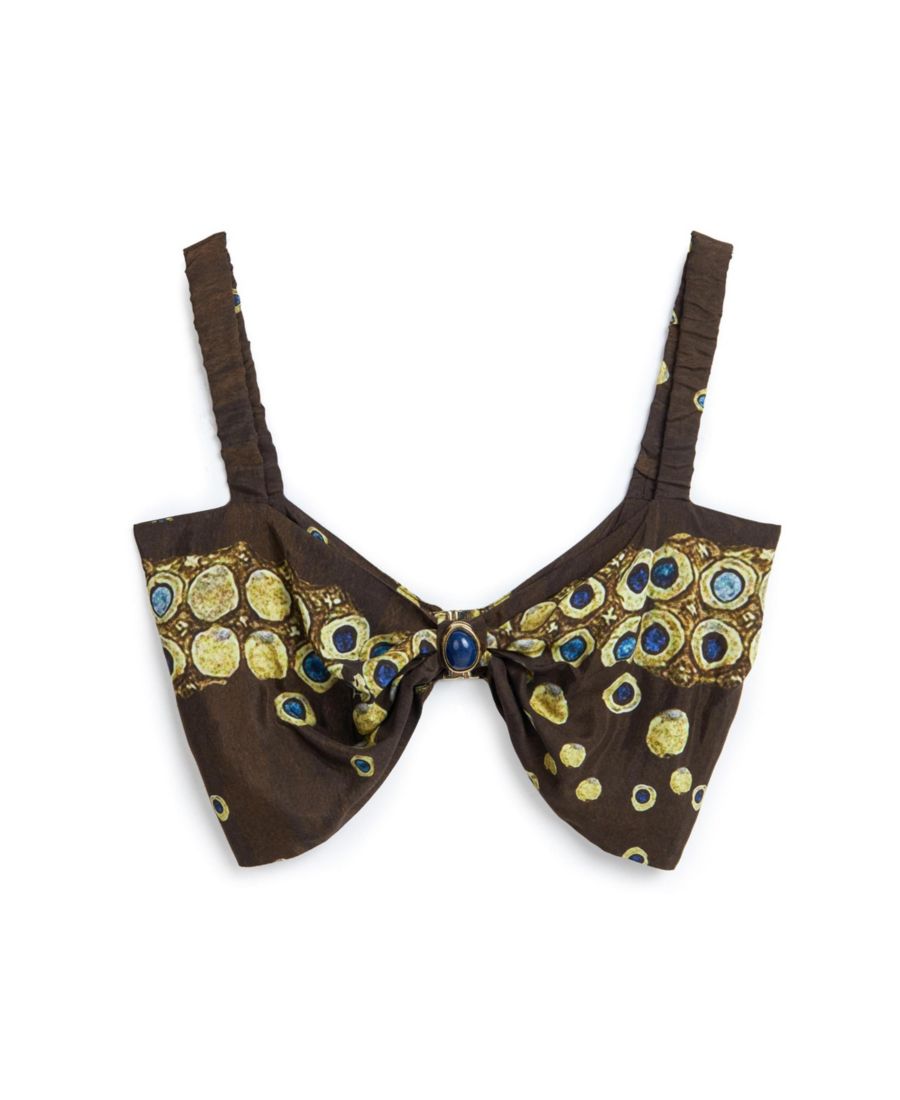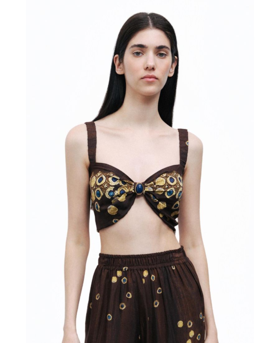 Уникальный узор на топе дополняется металлической застежкой-клипсой сзади и стильными бретелями, что делает этот топ незаменимым аксессуаром для любой модницы.