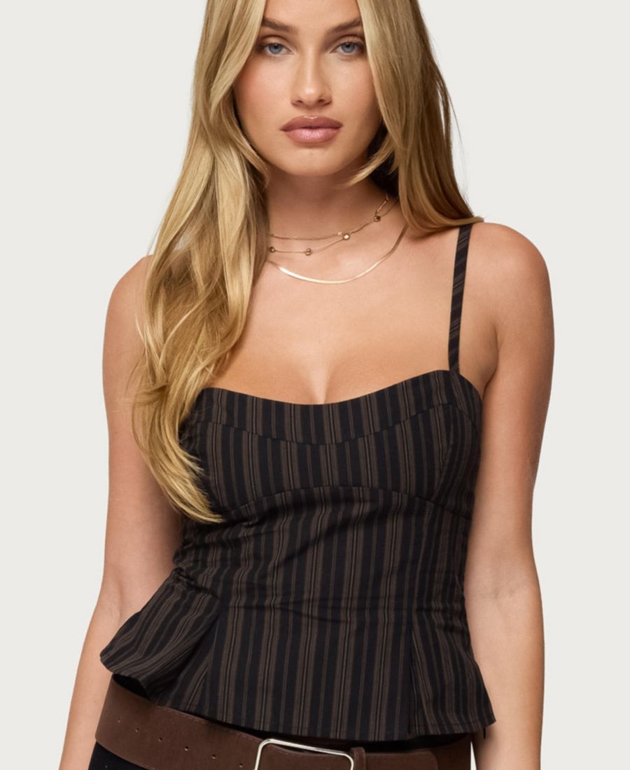 Женский полосатый топ с баской Kiya Edikted, Black