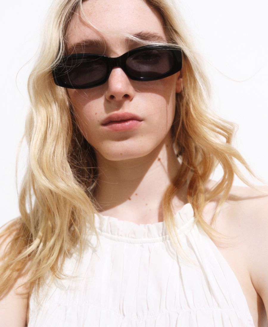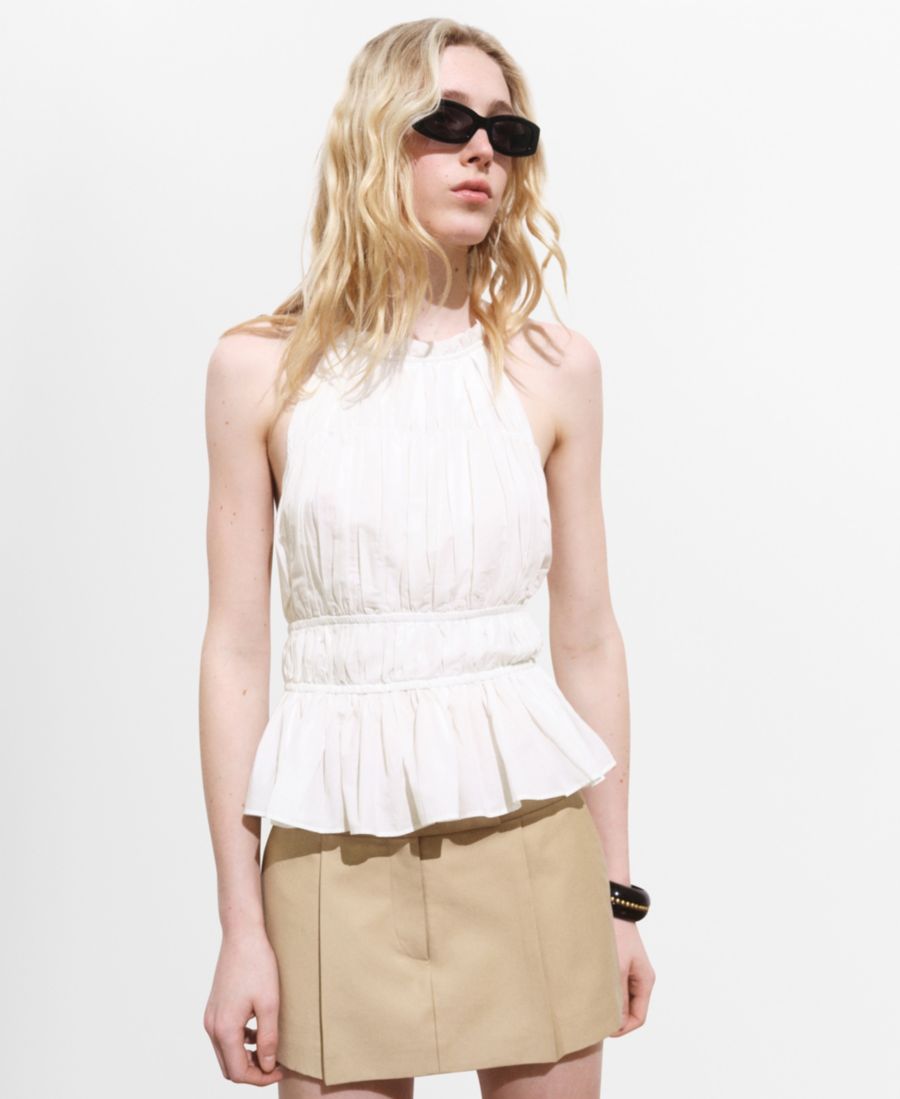 Мягкий объемный лиф с завязками на шее от Mango. Этот лиф отличается приталенным дизайном с присборенной вставкой на талии и открытой спинкой.