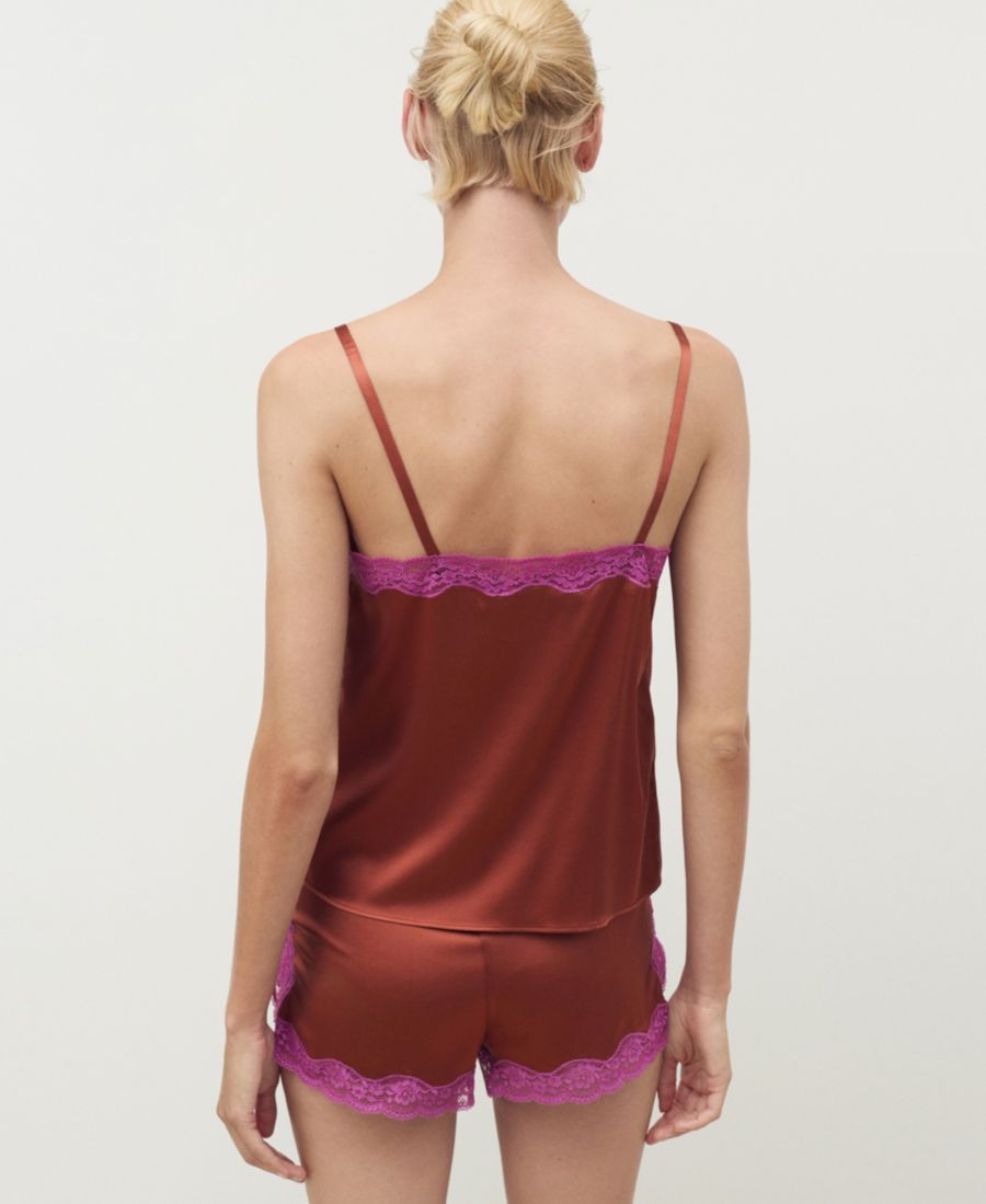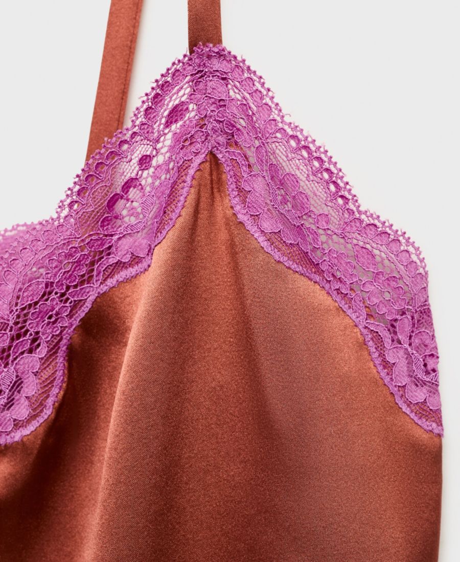 Женский шелковый топ с контрастным кружевом MANGO, Brown