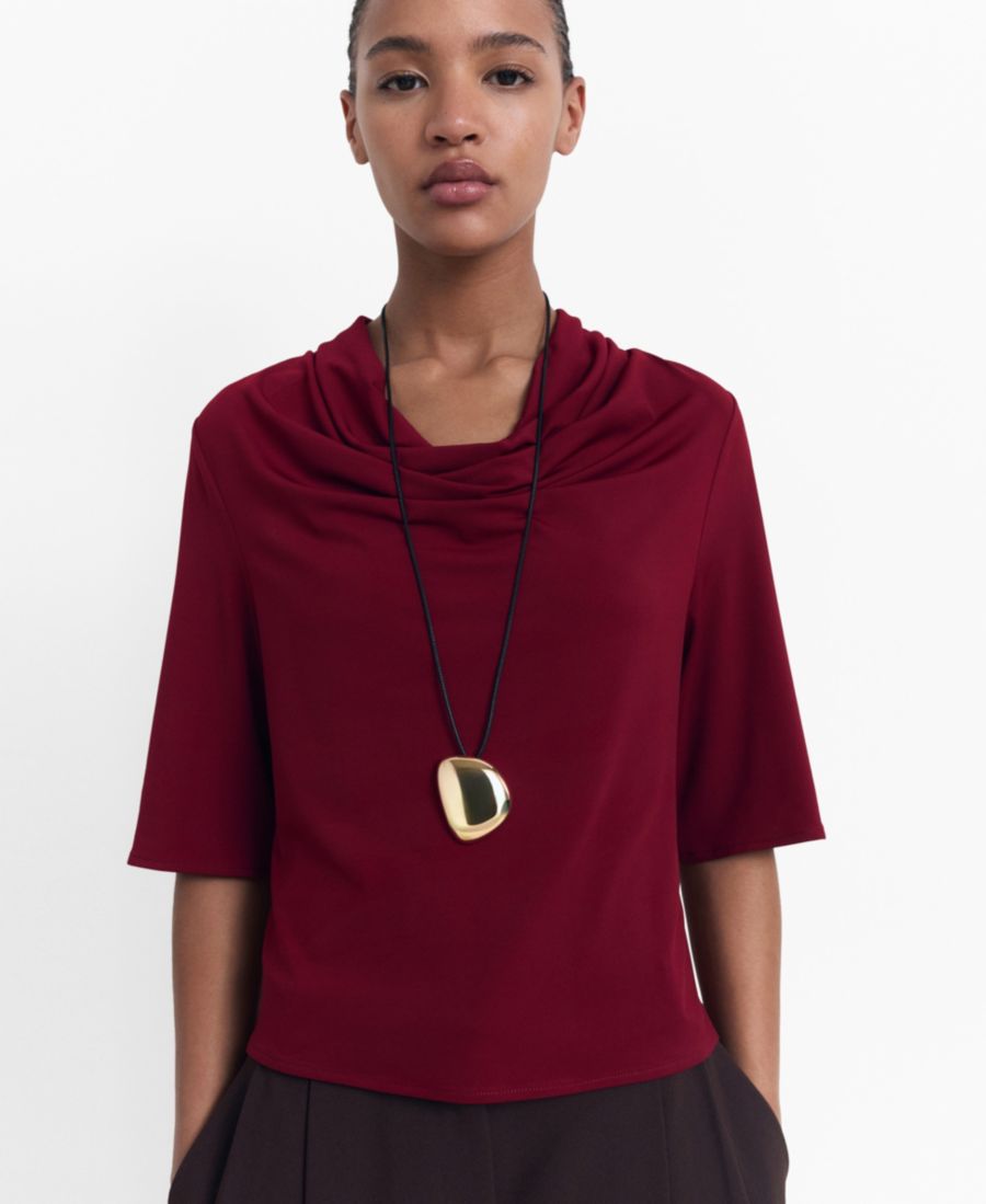 Женский топ с драпированным вырезом MANGO, Burgundy