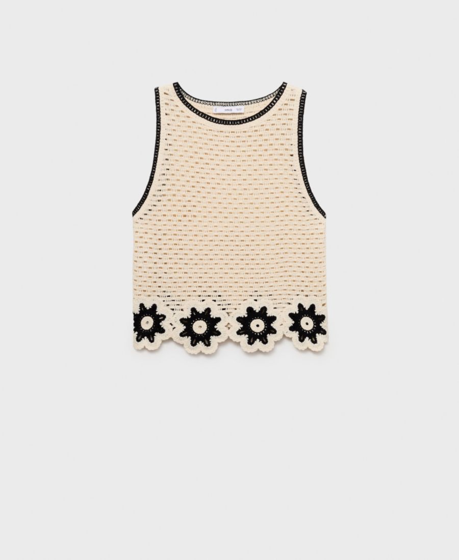 Изящный и оригинальный вязаный крючком топ с цветочным узором от Mango отличается вниманием к деталям.