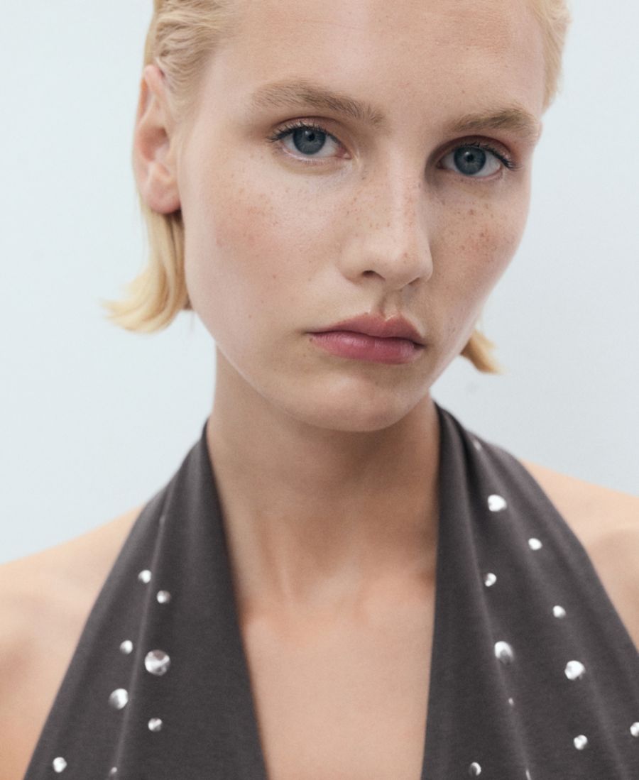 Современные элементы украшают топ-халтер с металлическими аппликациями от Mango.