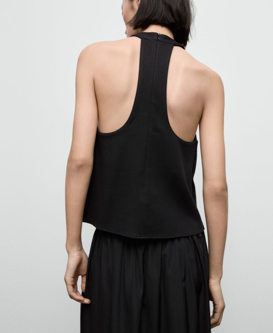 Минималистичный дизайн отличает топ-халтер с глубоким вырезом на спине от Mango.