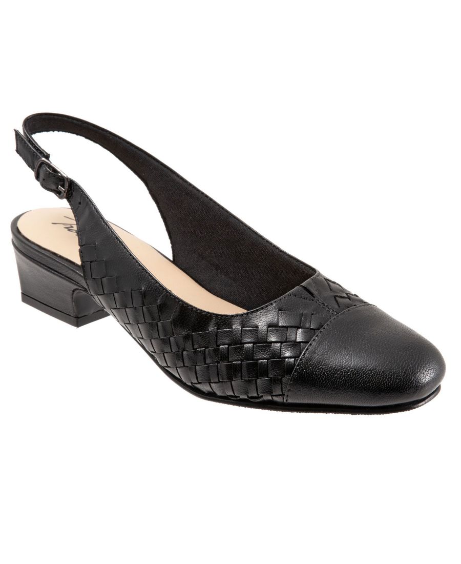 Бестселлер Trotters, модель Dea, получила плетеную отделку, которая придает этим изящным туфлям-лодочкам с открытой пяткой совершенно новый характер. Модель Dea Woven имеет мягкую подкладку и амортизирующую стельку.
