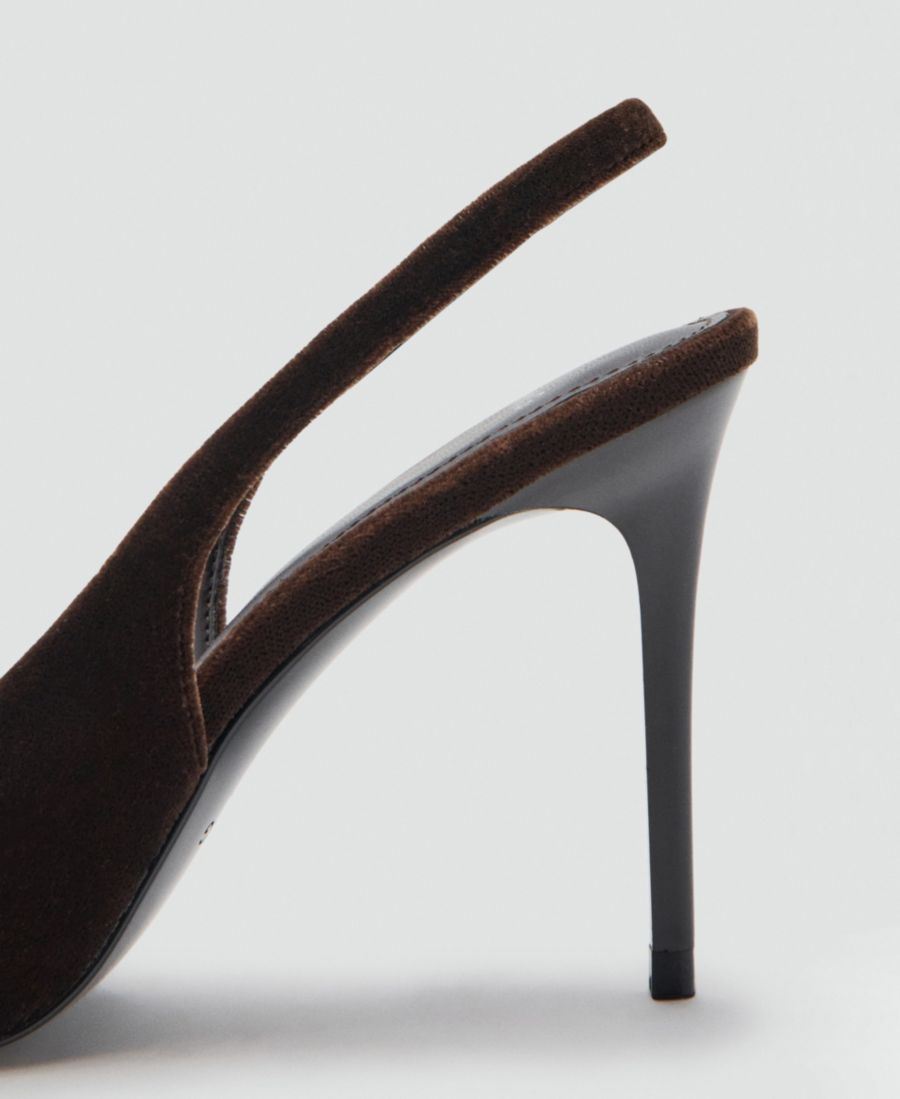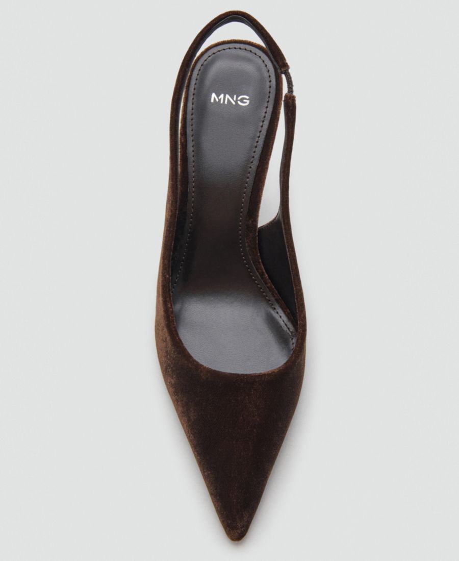 Придайте своей походке изысканности с помощью бархатных туфель на каблуке от Mango. Эти туфли, изготовленные из бархатной ткани, имеют открытую заднюю часть и 10-сантиметровый каблук-шпильку с заостренным носком.