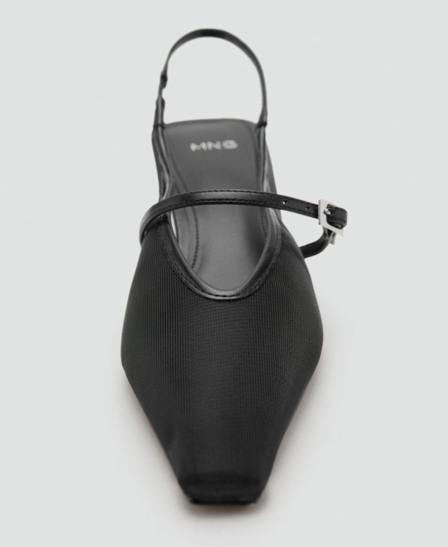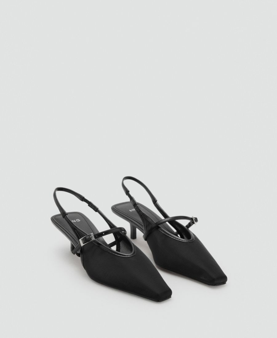 Изысканный каблук - отличительная черта туфель на каблуке из сетчатой ткани от Mango. Эти туфли оснащены регулируемой пряжкой и невысоким каблуком высотой 4,5 см.