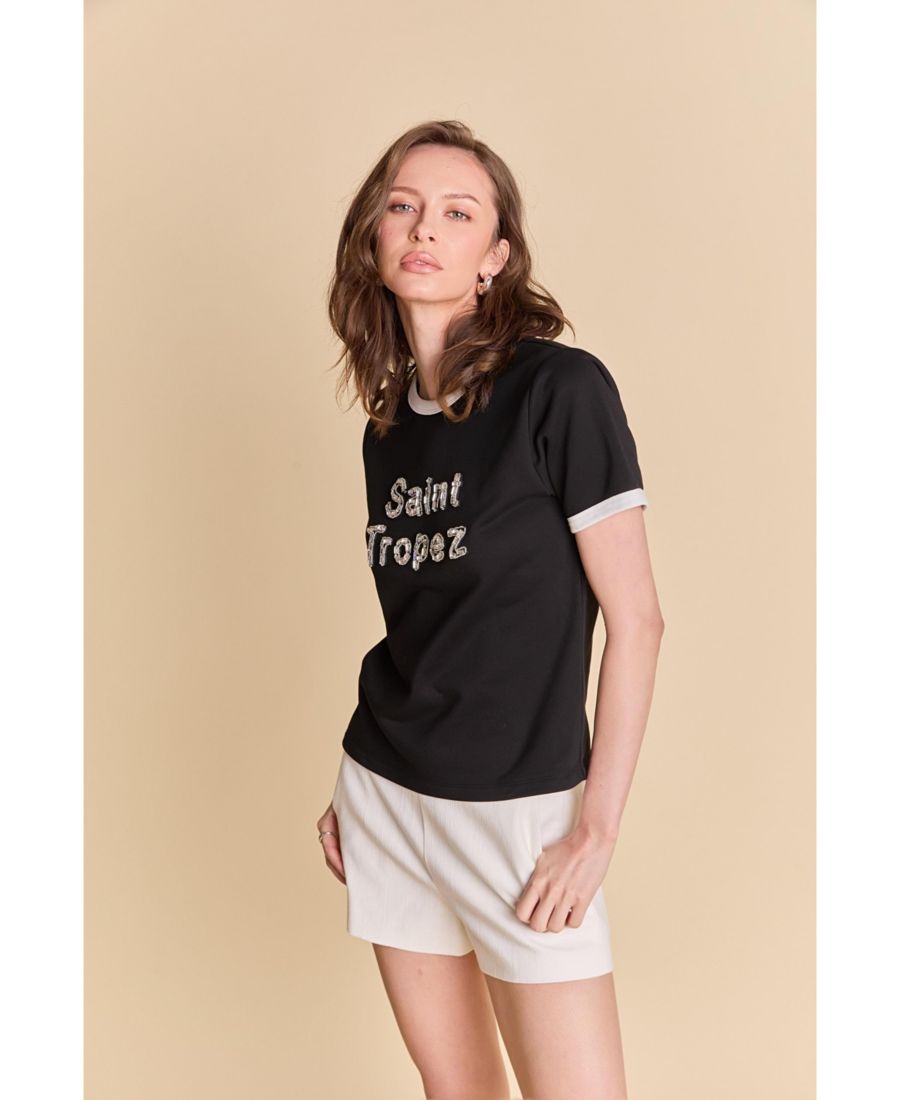 Представляем футболку Saint Tropez - идеальное дополнение к вашему гардеробу в этом сезоне. Стильный дизайн с надписью преобразит любой образ. Круглый вырез и короткие рукава создают классический, но в то же время элегантный вид, а стандартный крой обеспечивает комфортный и привлекательный силуэт. Изготовленная из высококачественных материалов, эта футболка одновременно прочная и мягкая, что делает ее идеальной для повседневной носки. Сочетайте ее с любимыми джинсами или юбкой для создания непринужденного стиля. Не упустите эту незаменимую вещь. Купите сейчас и создайте модный образ.