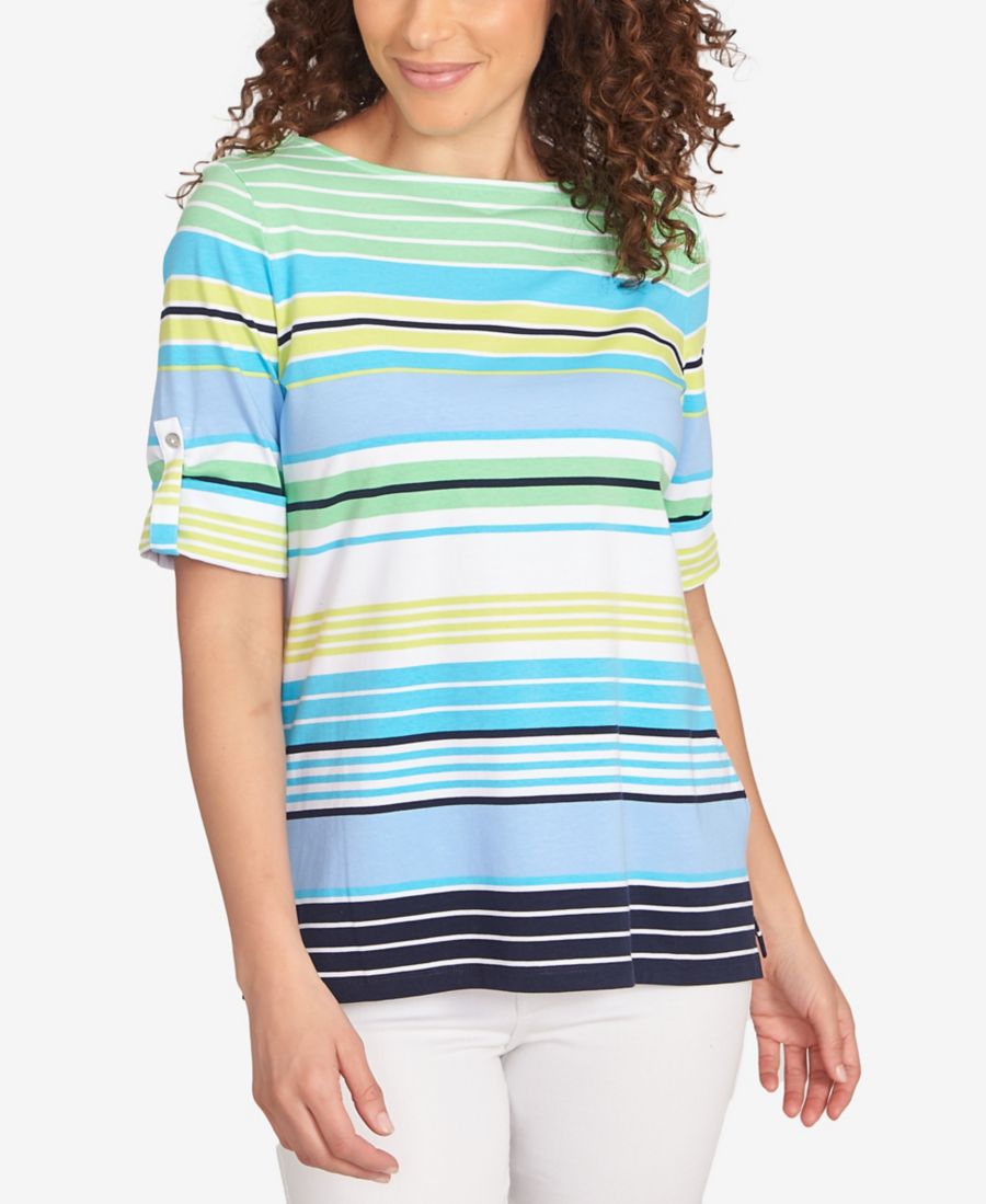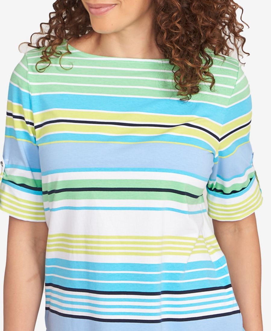 Футболка с рукавами в разноцветную полоску для невысоких девушек Ruby Rd, Chambray Blue Multi 7 710₽