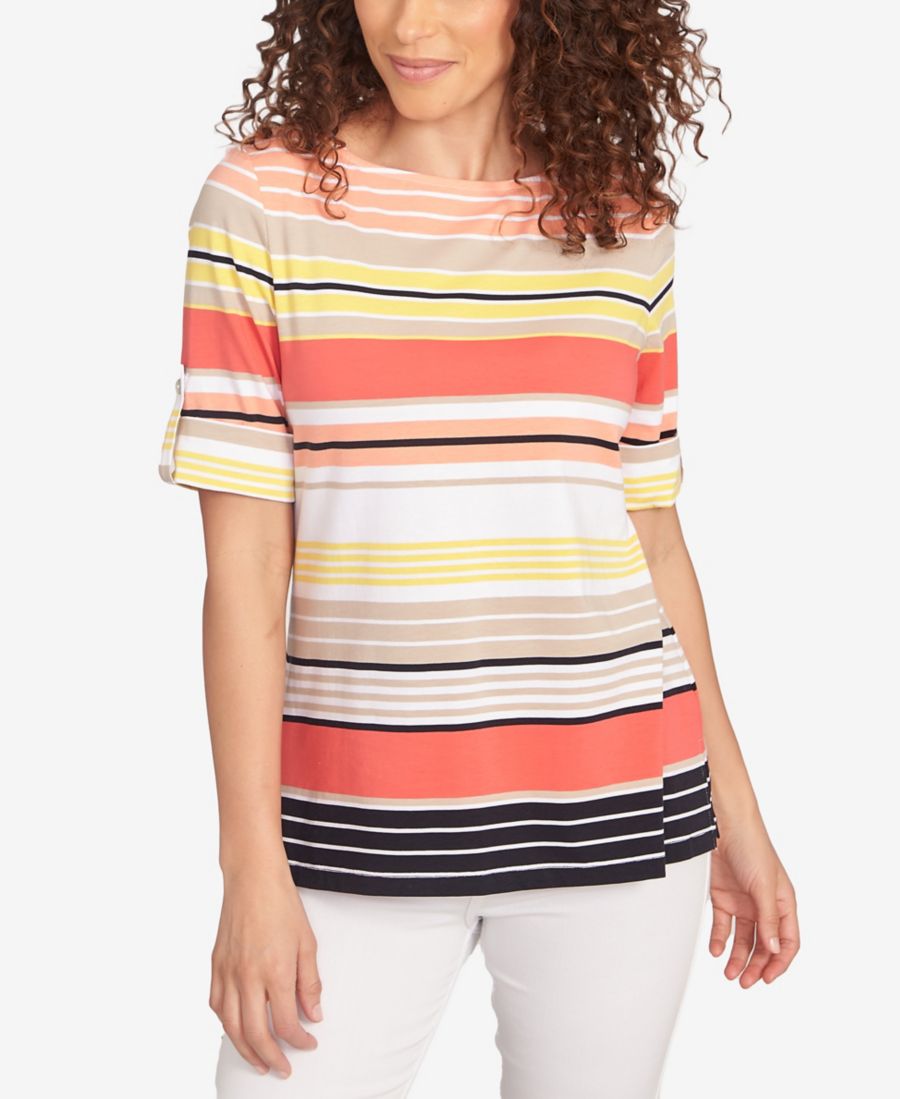 Футболка с рукавами в разноцветную полоску для невысоких девушек Ruby Rd, Grapefruit Multi 7 794₽