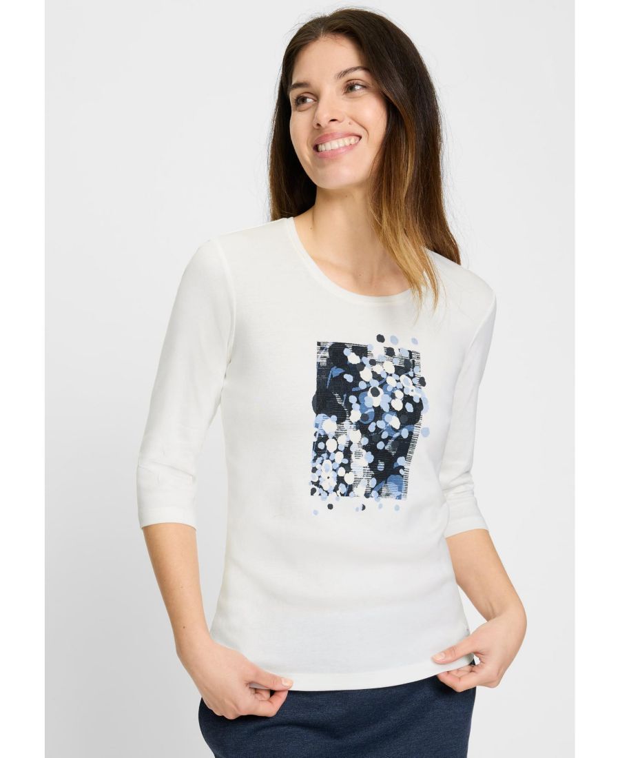Эта футболка сочетает в себе все преимущества чистого хлопка с игривым абстрактным принтом по центру передней части.