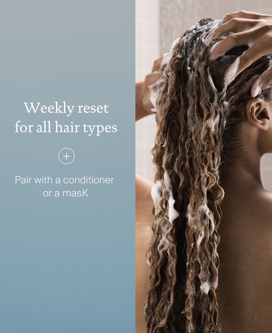 Помогает глубоко очистить волосы, не пересушивая их, удаляя остатки средств для укладки, загрязнения, излишки кожного сала и тяжелые металлы, помогая волосам дольше оставаться чистыми и улучшая яркость цвета.