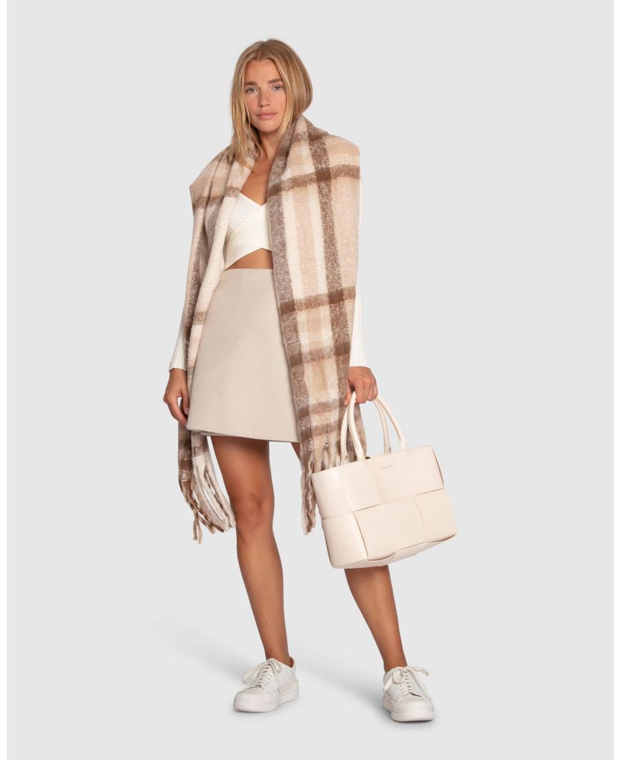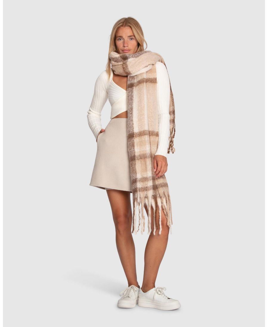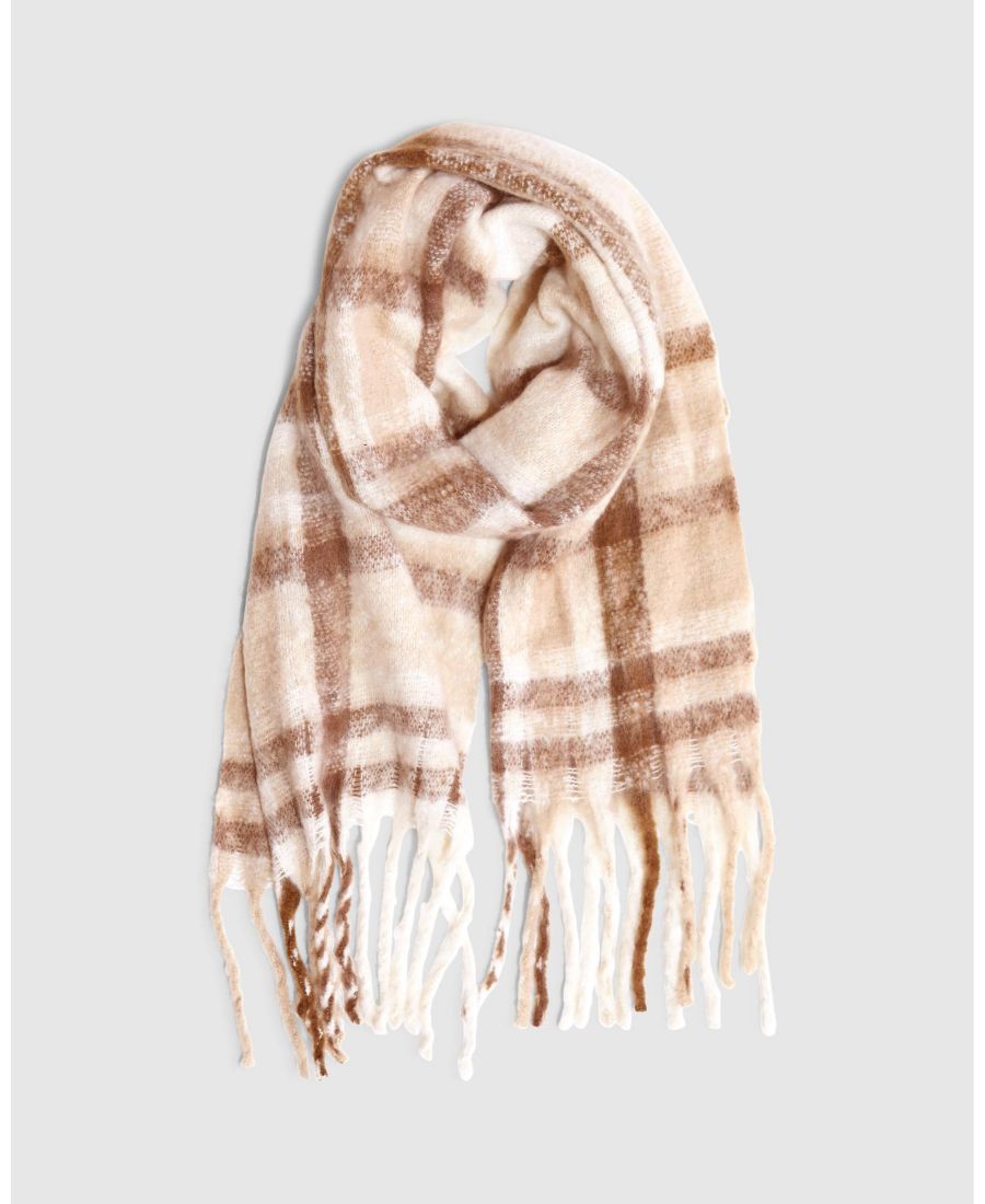 Уютный и стильный шарф, созданный для того, чтобы преобразить ваш зимний гардероб. Классический клетчатый узор в оттенках синего, от темно-синего до нежного, спокойного светло-голубого, с едва заметным оттенком светло-бежевого. Этот ультрамягкий вязаный шарф отделан изящной бахромой, что придает ему вневременной, утонченный вид. Идеально подходит для того, чтобы добавить тепла и стиля любому образу.