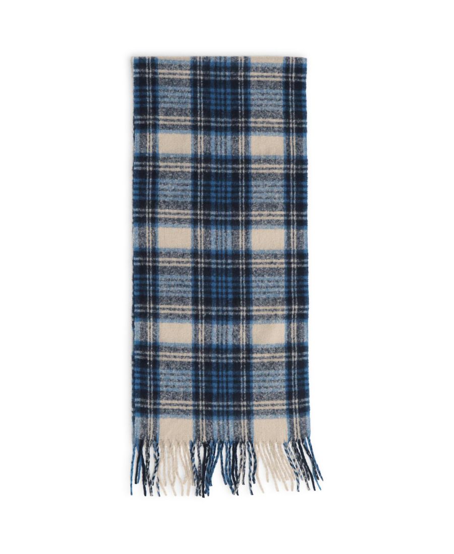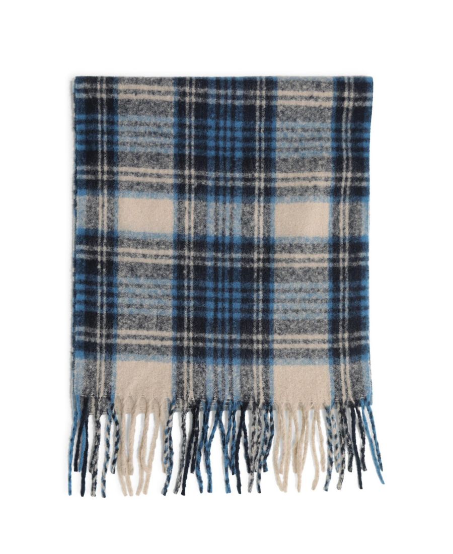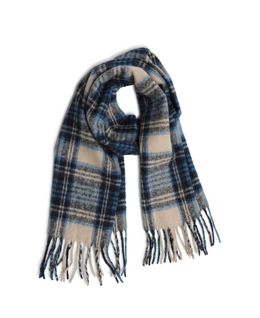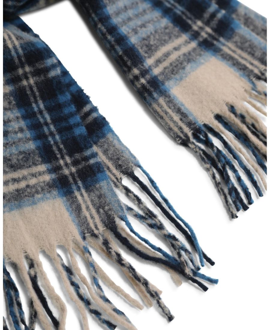 Уютный и стильный шарф, созданный для того, чтобы преобразить ваш зимний гардероб. Классический клетчатый узор в оттенках синего, от темно-синего до нежного, спокойного светло-голубого, с едва заметным оттенком светло-бежевого. Этот ультрамягкий вязаный шарф отделан изящной бахромой, что придает ему вневременной, утонченный вид. Идеально подходит для того, чтобы добавить тепла и стиля любому образу.