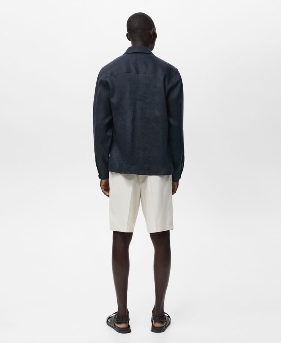 Почувствуйте себя комфортно в дышащих классических шортах-бермудах из льна от Mango. Изготовленные из льняной ткани, эти шорты имеют петли для ремня, застежку на молнию и пуговицу, боковые карманы и карман для мелочи.