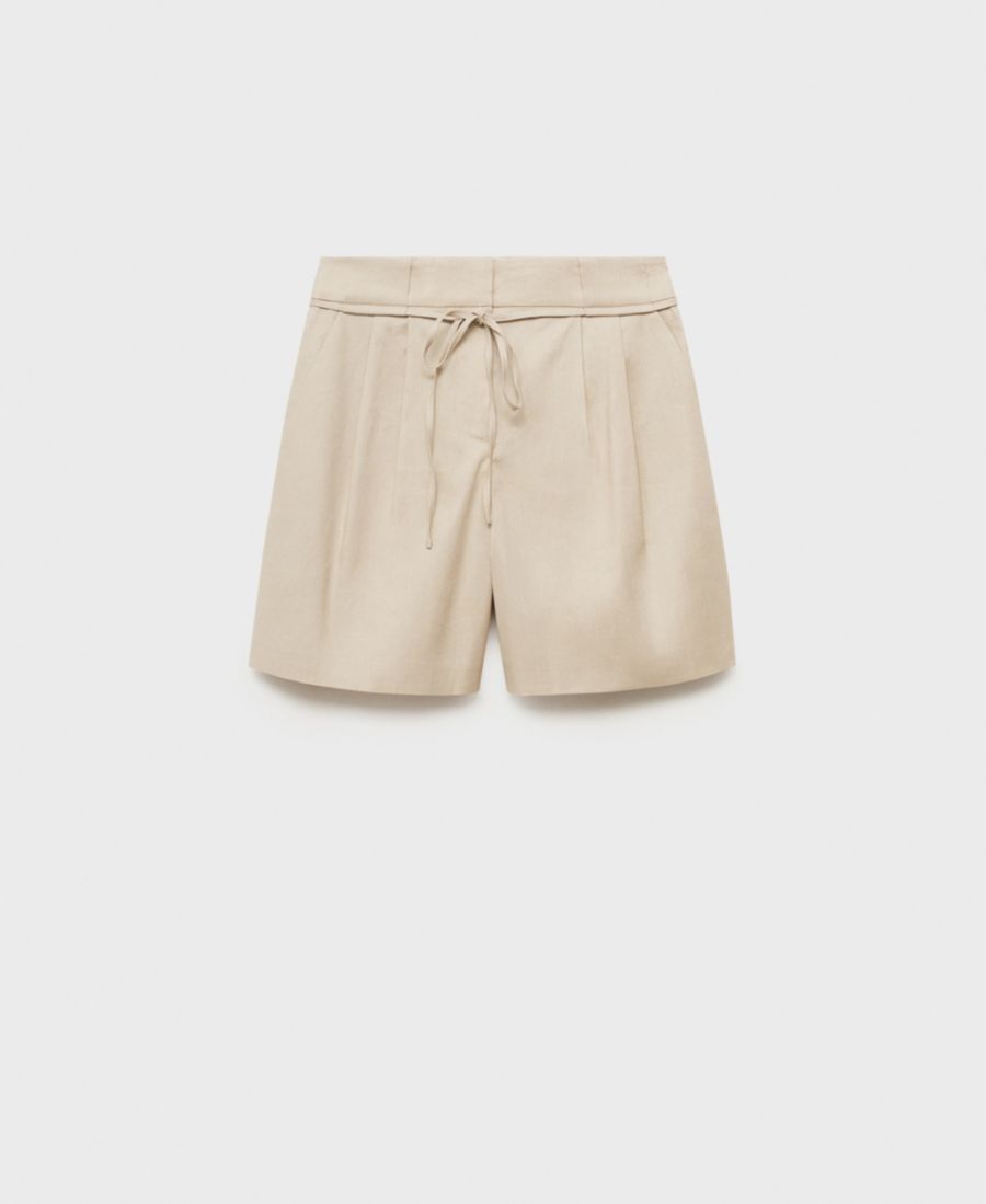 Детали в виде галстука придают льняным шортам с бантом и поясом от Mango особый шарм.