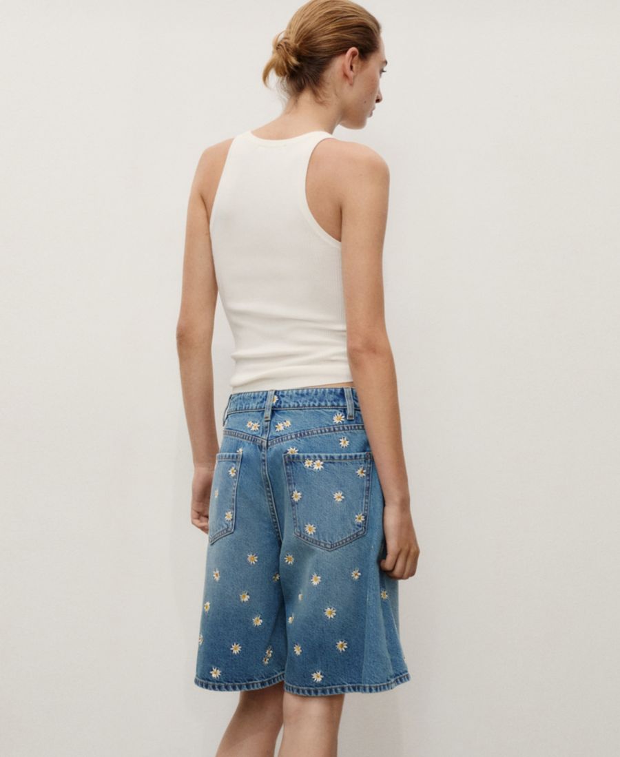 Чувствуйте себя комфортно в джинсовых шортах-бермудах с цветочной вышивкой от Mango.