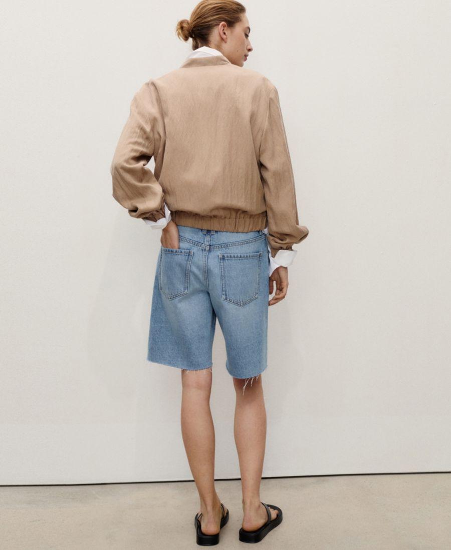 Текстура играет ведущую роль в джинсовых шортах-бермудах с бахромой от Mango.