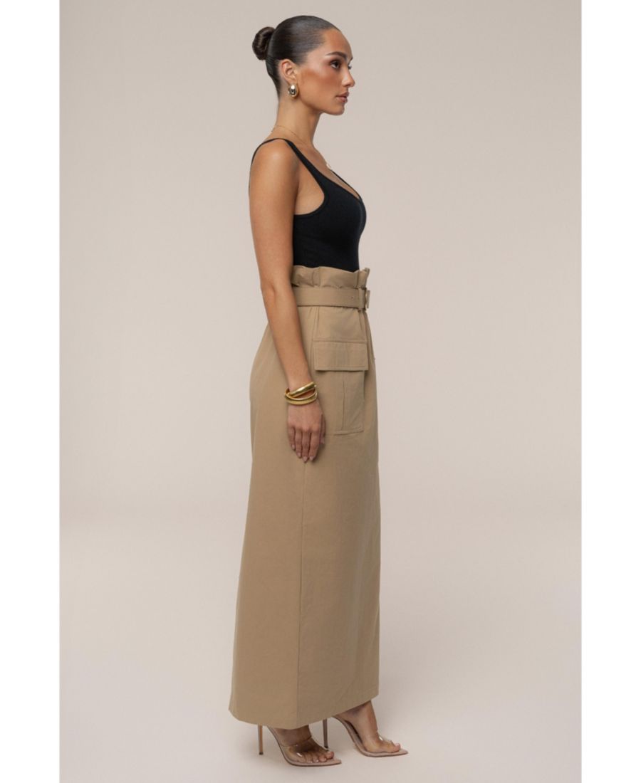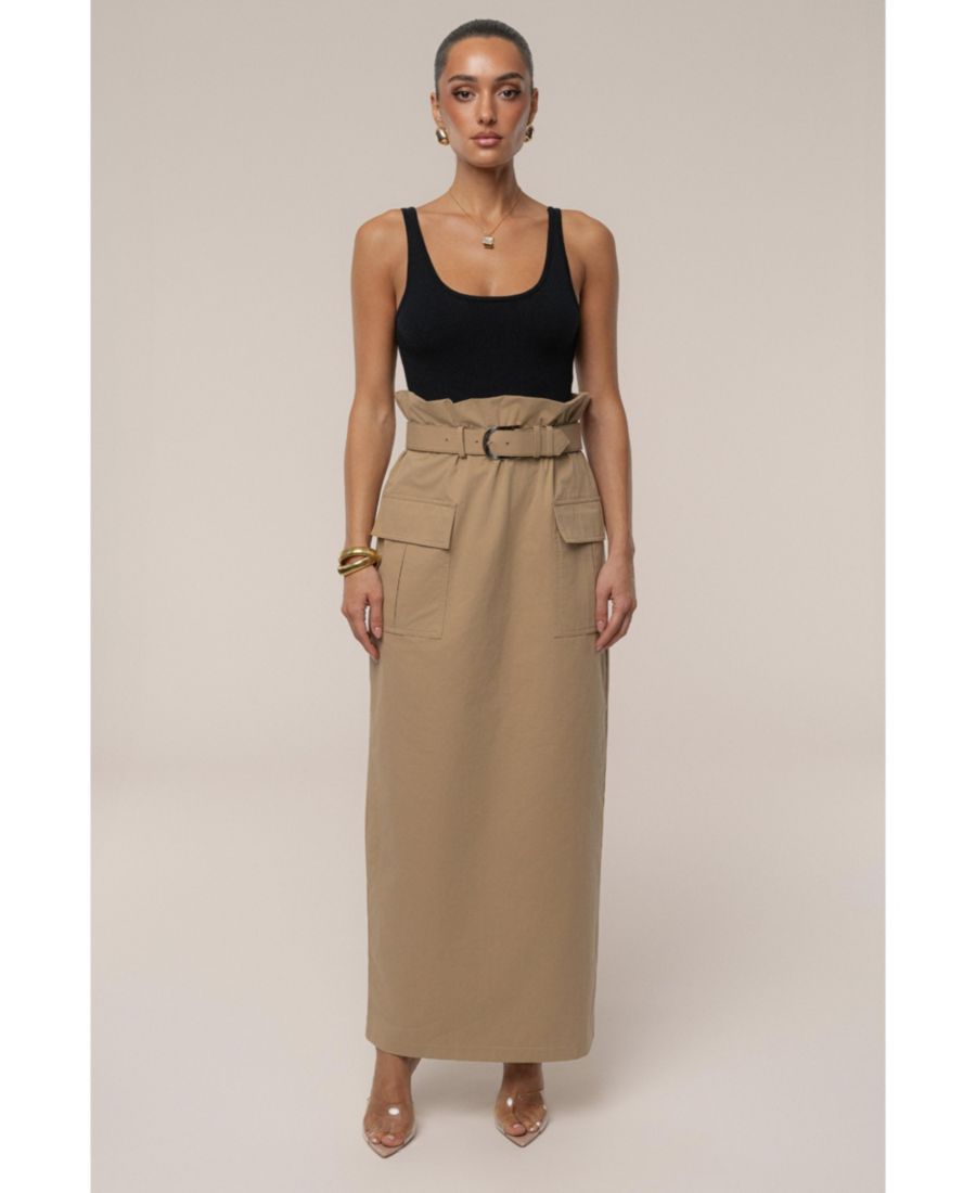 Длинная юбка с высокой талией и эффектным силуэтом бумажный мешок для современного женственного стиля Изготовлена из дышащей, легкой ткани для комфорта в течение всего дня и свободы движений Шикарный дизайн в стиле карго с функциональными карманами для стиля и практичности В комплекте пояс с эффектной золотистой пряжкой, подчеркивающий талию и придающий образу элегантности Универсальный цвет хаки легко сочетается с блузками, боди или повседневными топами, предоставляя бесконечные возможности для создания образов 100% хлопок Ручная стирка Импортный товар